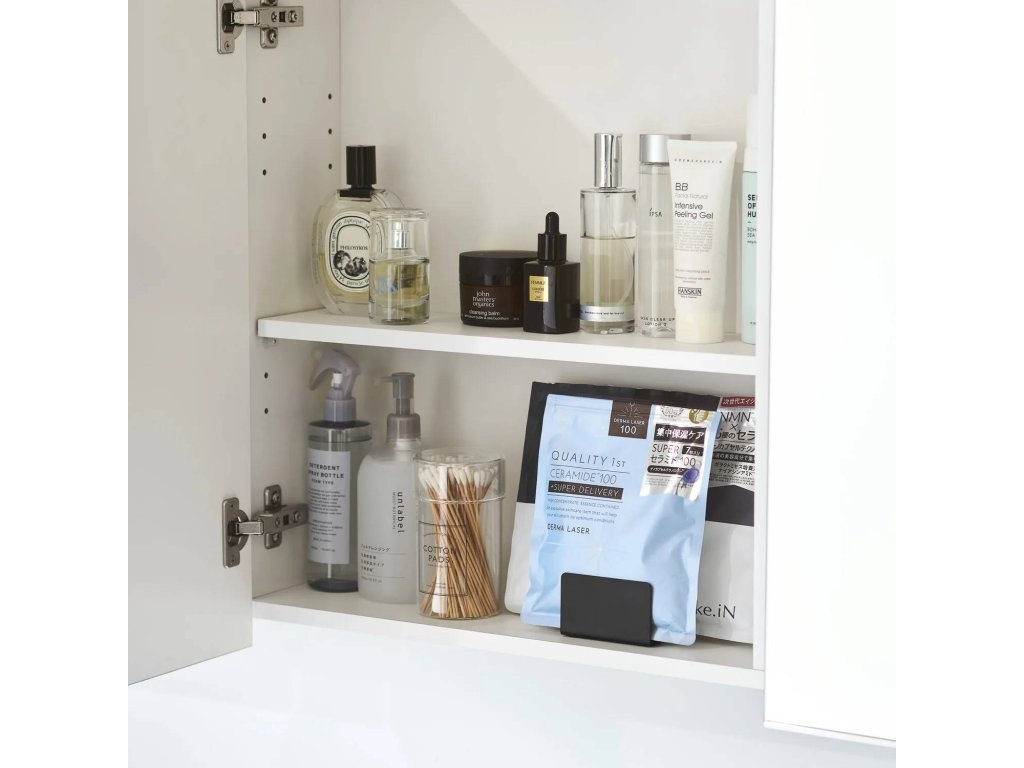 Praktický kovový organizér YAMAZAKI Tower 1949 (bílý) / 1950 (černý) pro přehledné a snadno dostupné uložení drobných předmětů v koupelnové skříňce, na poličce nebo na pracovní desce. Dvě přihrádky pro předměty o tloušťce od 3 do 4,2 cm udržují obsah ve svislé poloze a šetří místo.