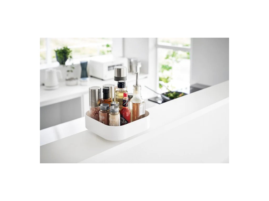 Otočný úložný zásobník YAMAZAKI Tower 2198 je praktickým řešením pro uspořádání různých domácích potřeb. Na jídelním stole lze využít na dochucovací přísady, v koupelnové skříňce na parfémy a drobné doplňky. Otočná konstrukce umožňuje snadný přístup ze všech stran a zajišťuje pohodlné skladování a dostupnost. Materiál: ABS, silikon. Velikost: 6,3 x 20 x 20 cm (VxŠxH) / nosnost: 4 kg.