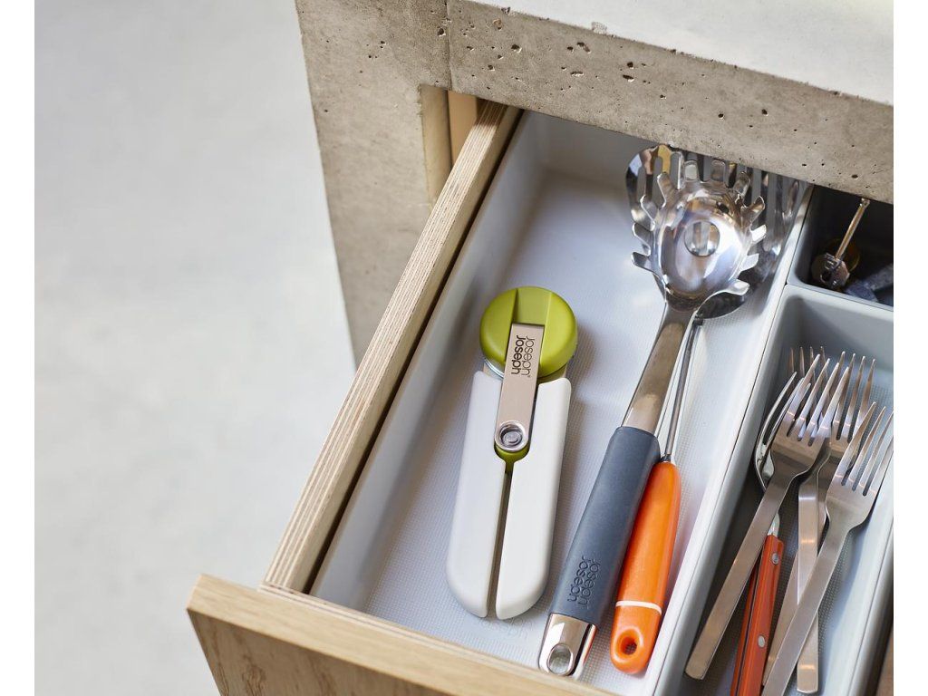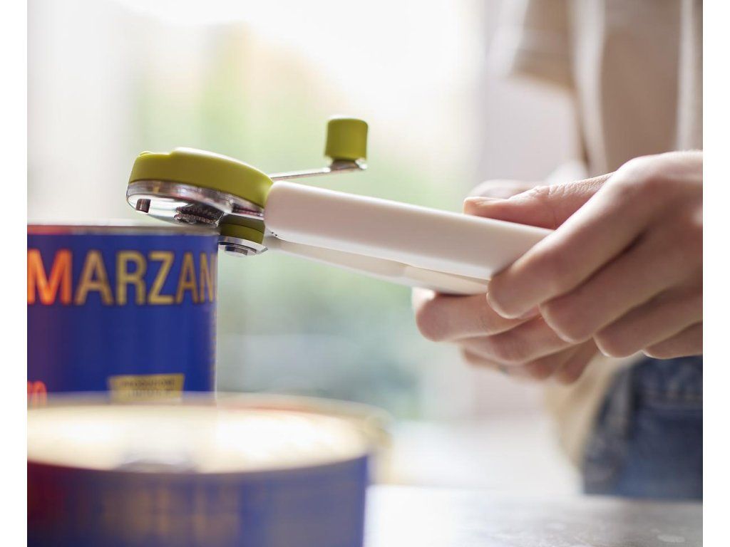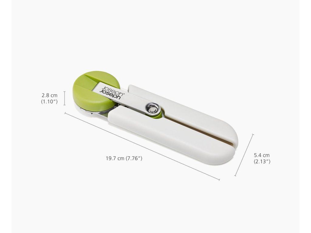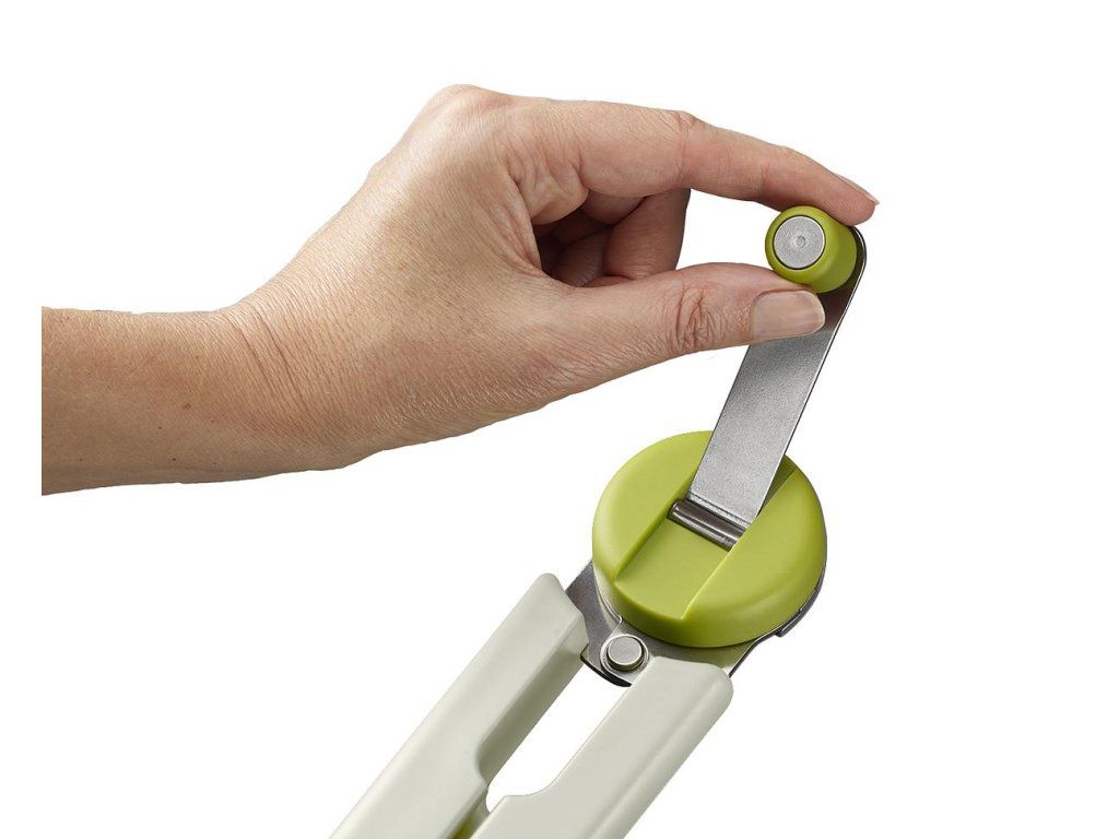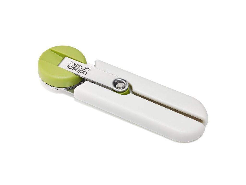 Maximálně efektivní otvírák konzerv JOSEPH JOSEPH GoRound 1000064. Má ergonomickou kličku pro pohodlné ovládání snižující namáhání zápěstí. Bezpečným řezacím mechanismem odstraníte celou horní část konzervy. Výsledkem je čistý řez bez roztřepených hran. Rukojeť se skládá do plochého stavu pro úsporu místa.