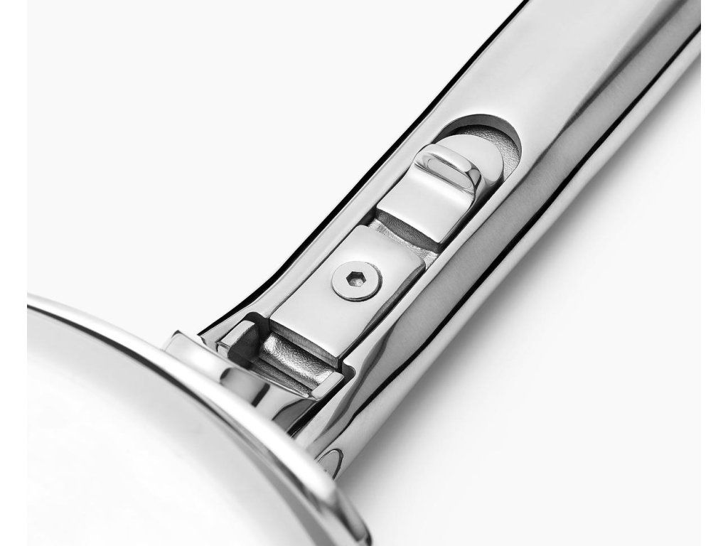 Díky nerezovým skládacím rukojetím s patentovanou technologii SwingLock lze nádobí v zásuvkách a skříňkách stohovat. Ušetříte tak 50% úložného prostoru. Sklopné jsou i velké nerezové úchyty umožňující u větších nádob manipulaci oběma rukama. Skleněné police jsou vyrobeny z tvrzeného skla. Sklopné úchyty poklic umožňují jejich úsporné skladování ve stojánku (45053). Pro ochranu povrchů nádob při stohování doporučujeme užití ochranných vložek (45052). Nádobí lze mýt v myčce. Pro prodloužení životnosti doporučujeme ruční mytí. Z důvodu rizika poškrábání při vaření nepoužívejte nerezové nástroje.