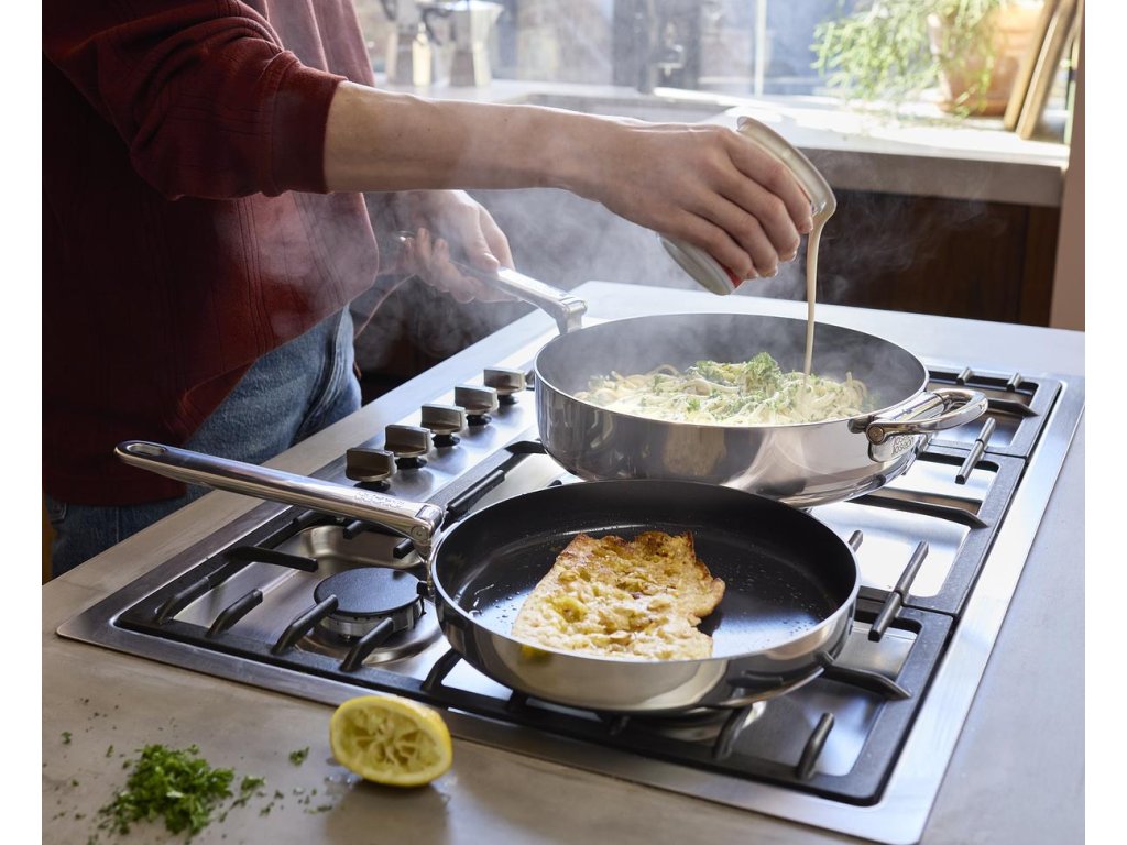Nádobí Space Steel Non-Stick má robustní třívrstvou konstrukci s leštěným nerezovým vnějším povrchem, hliníkovým jádrem zajišťujícím rovnoměrnou distribuci tepla a vnitřním netoxickým nepřilnavým keramickým povrchem Sol-gel, který splňuje nejvyšší požadavky na zdravotní nezávadnost (bez obsahu PTFE, PFAS, PFOA, olova i kadmia). Nádobí je vhodné pro užití se všemi druhy sporáků a varných desek včetně indukčních. Užití pro zapékání v troubě je možné do teploty 232ºC (Gas Mark 8), s poklicí do teploty 200ºC (Gas Mark 6).