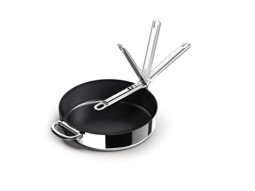 Díky nerezovým skládacím rukojetím s patentovanou technologii SwingLock lze nádobí v zásuvkách a skříňkách stohovat. Ušetříte tak 50% úložného prostoru. Sklopné jsou i velké nerezové úchyty umožňující u větších nádob manipulaci oběma rukama. Skleněné police jsou vyrobeny z tvrzeného skla. Sklopné úchyty poklic umožňují jejich úsporné skladování ve stojánku. Pro ochranu povrchů nádob při stohování doporučujeme užití ochranných vložek (45052). Nádobí lze mýt v myčce. Pro prodloužení životnosti doporučujeme ruční mytí. Z důvodu rizika poškrábání při vaření nepoužívejte nerezové nástroje.