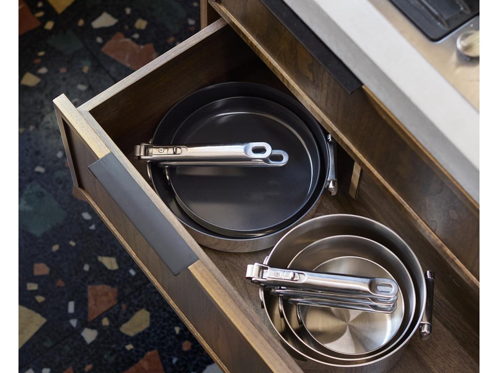 Prémiová řada nádobí profesionální kvality a inovativního designu. Nejkompaktnější nádobí pro prostorově úsporné skladování.