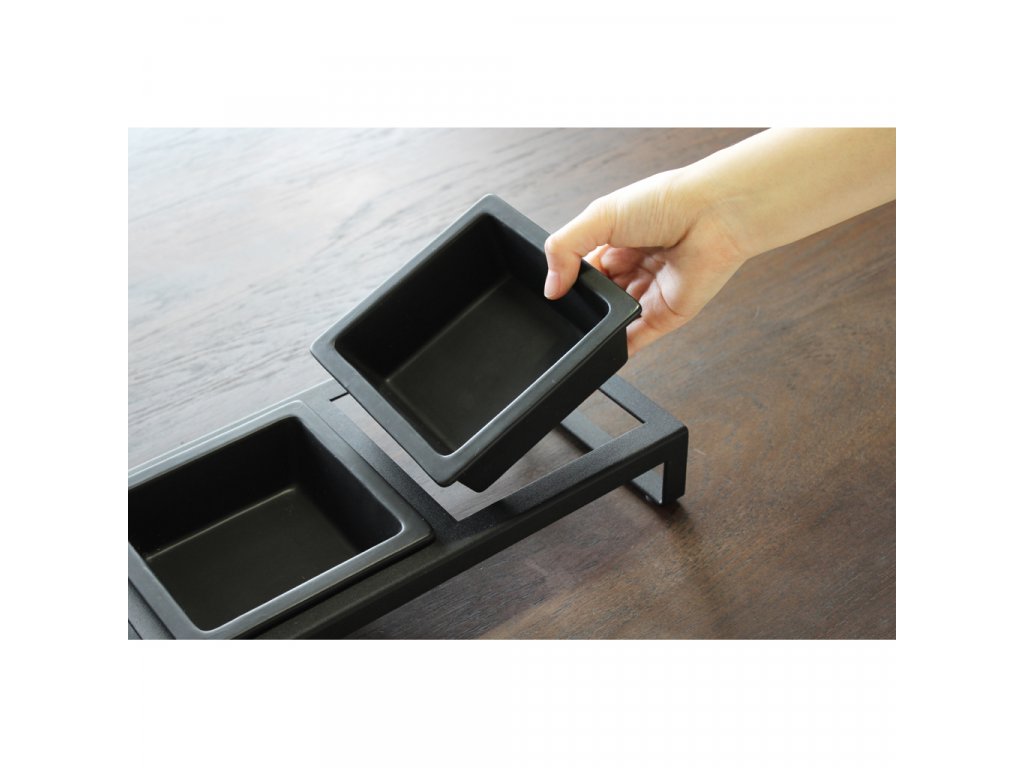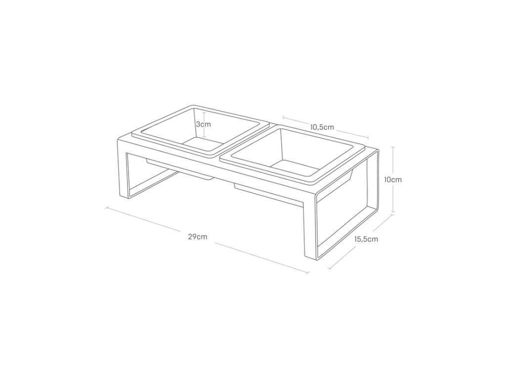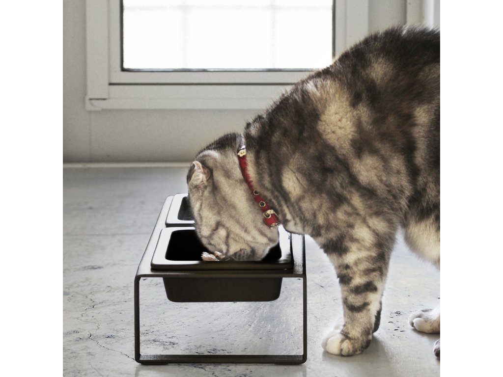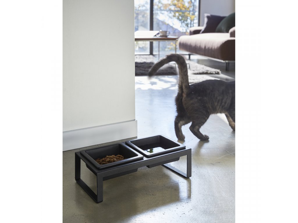 YAMAZAKI Tower - pet misky. Servírovací misky pro domácí mazlíčky. Materiál: lakovaný kov, keramika. Velikost: 10 x 29 x 15 cm (VxŠxH) / objem misky 300 ml.
