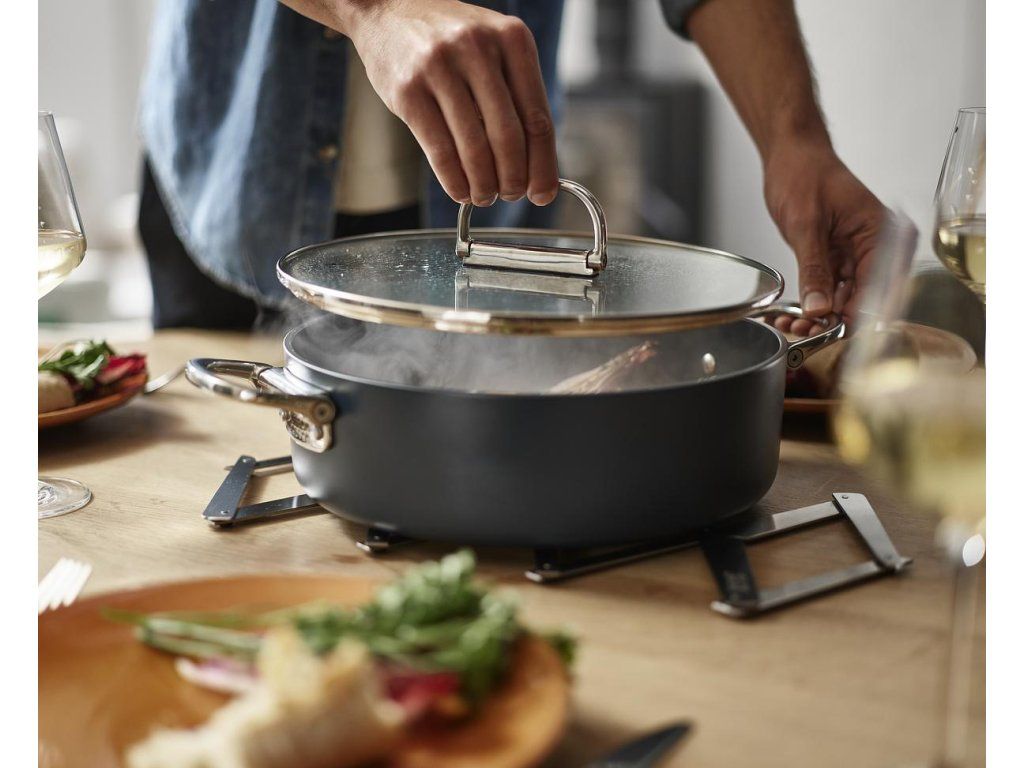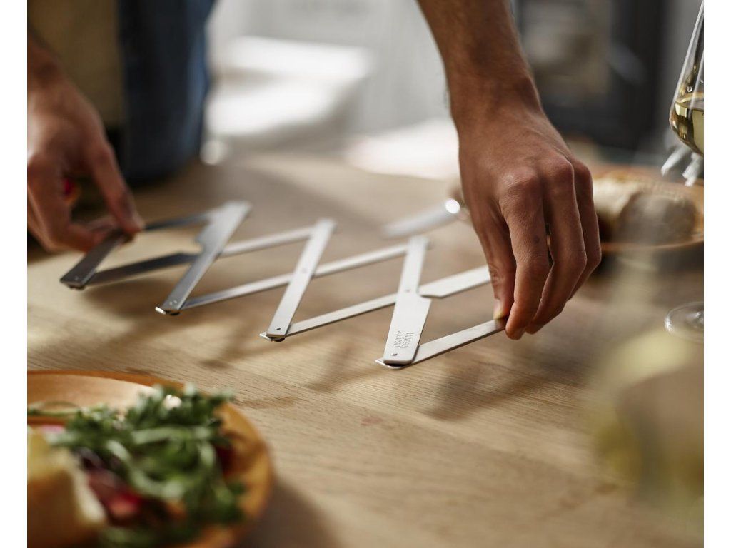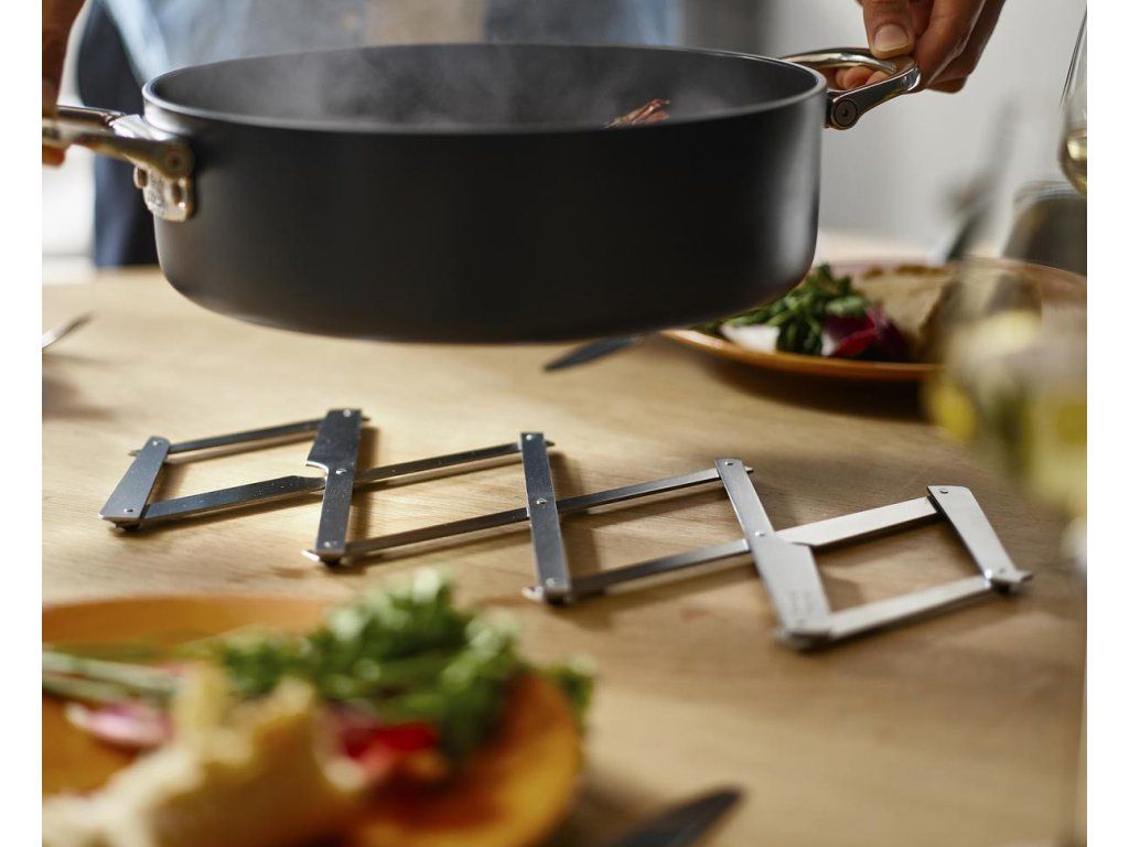 Nerezová podložka pod horké nádoby JOSEPH JOSEPH Space 45058 z oceli 18/8 s odolností do teploty 340˚C. Roztažitelná – ideální pro větší pánve, hrnce, pekáče a zapékací mísy. Otírejte vlhkým hadříkem. Nepoužívejte abrazivní houbičky a silné chemické čistící prostředky. Před manipulací a skladováním nechte podložku vychladnout na pokojovou teplotu.