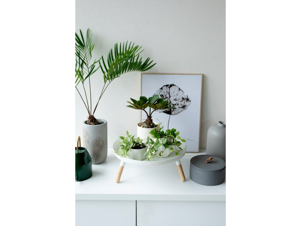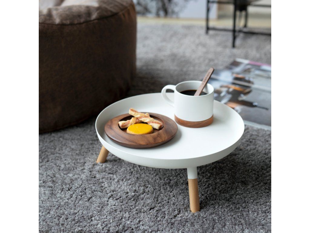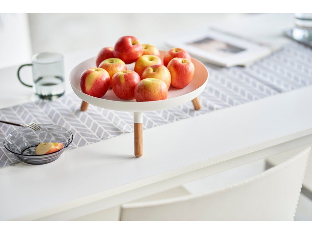 Kovový podnos s dřevěnými nožkami - YAMAZAKI Plain 5564. Nosnost 1,5 kg. Velikost: 13 x 32 x 32 cm (VxŠxH).