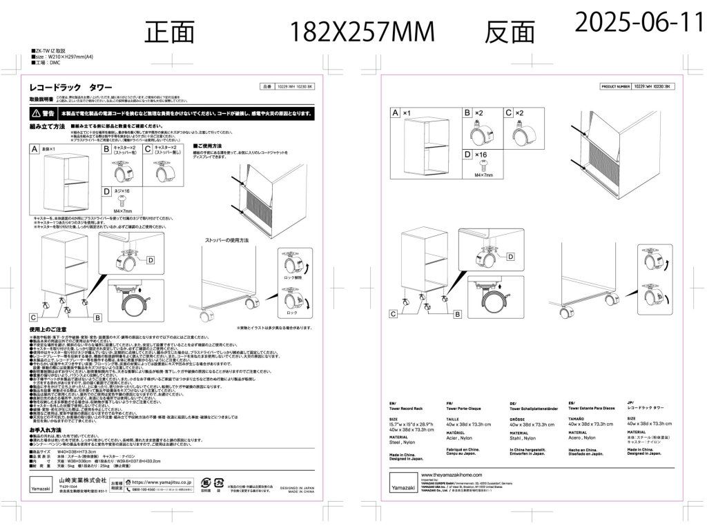 Pojízdné kovové poličky pro úhledné uspořádání LP desek – YAMAZAKI Tower 10229 (bílý) / 10230 (černé). Maximální zatížitelnost: 5kg (horní plocha), 25kg (vnitřní police).