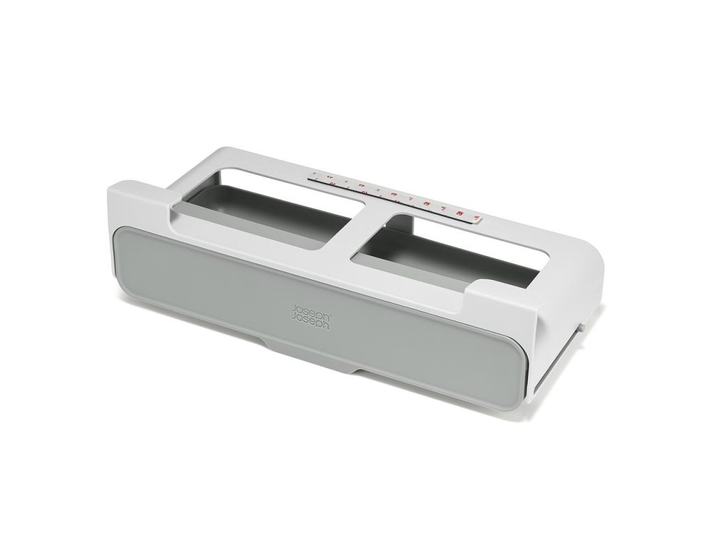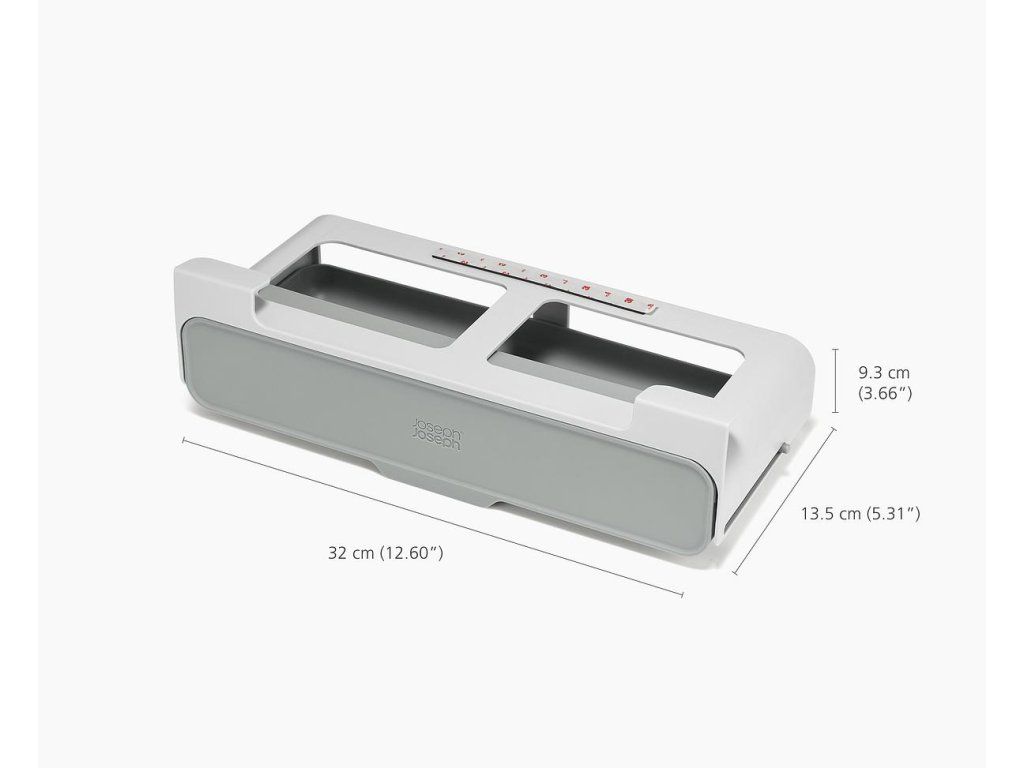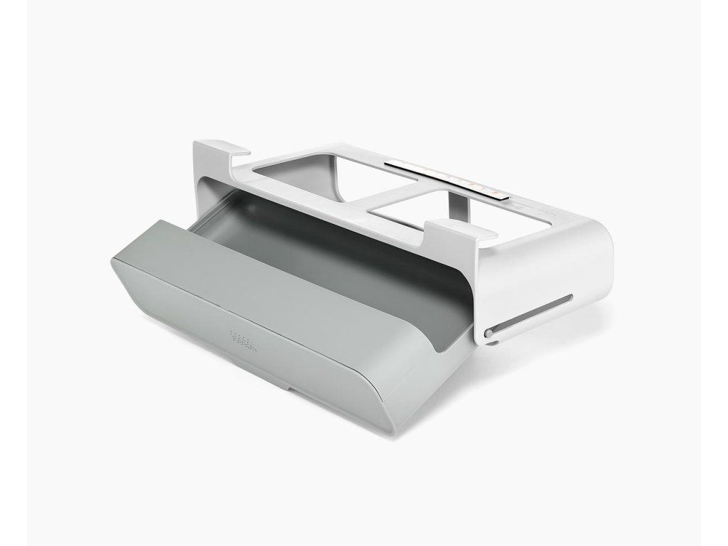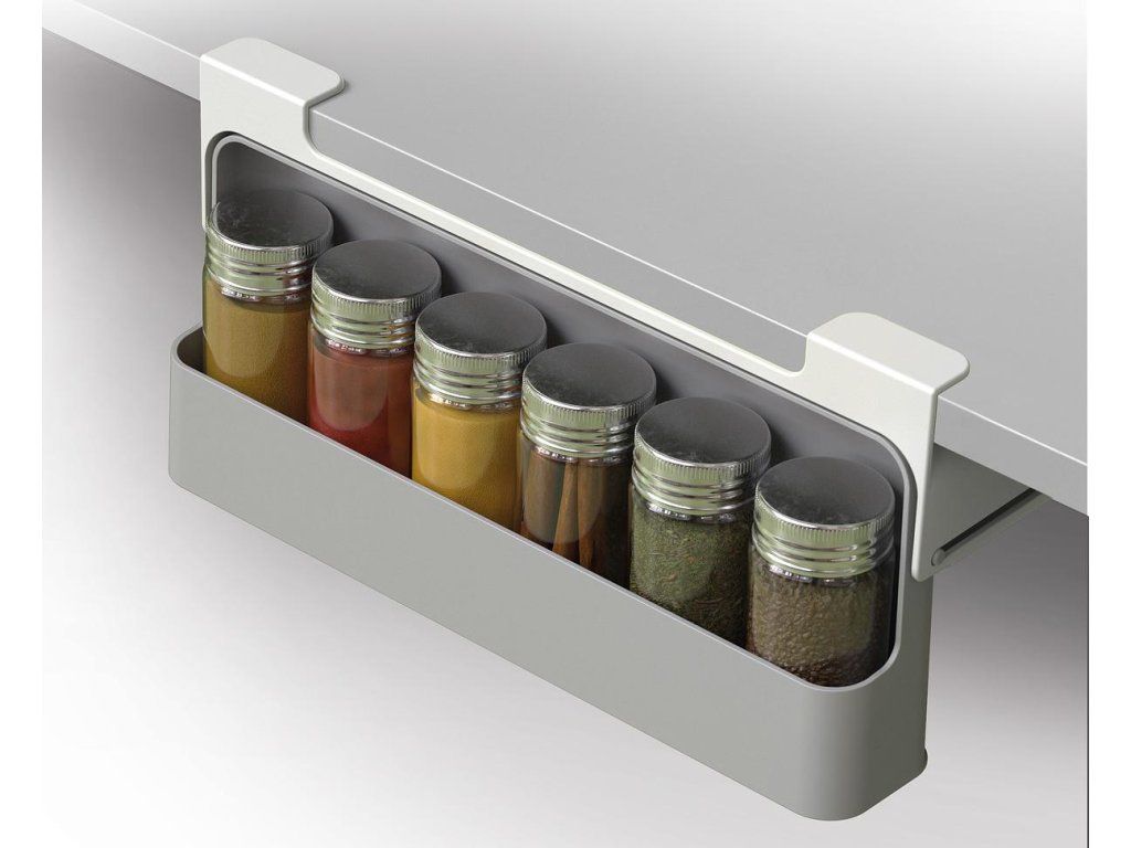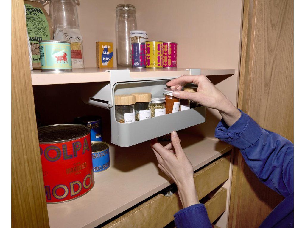 Praktická vyklápěcí polička na kořenky JOSEPH JOSEPH CupboardStore 8500021 k umístění do nevyužitého prostoru pod policí kuchyňské skříňky. Organizér je dodáván prázdný – bez kořenek. Uložit do něj můžete až 7 kořenek - max.velikost 5 x 5 x 12 cm (kulatého i kubického tvaru - u nás dodávány včetně náplně např. v síti obchodů Delmart). Snadná instalace pomocí samolepící 3M pásky. Určena pro skříňky s vnitřní hloubkou alespoň 32 cm / max. tloušťka poličky 2 cm.