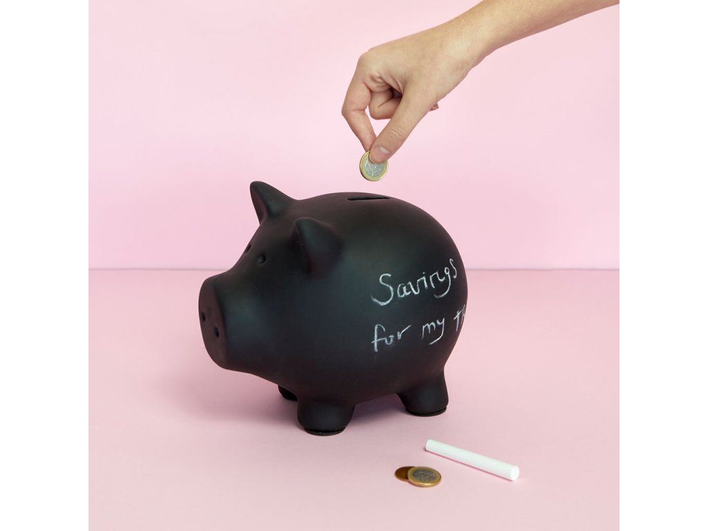 Keramická popisovatelná kasička BALVI Oink 25533. Dodáváno včetně křídy. Na spodní straně otvor na vyjmutí úspor.