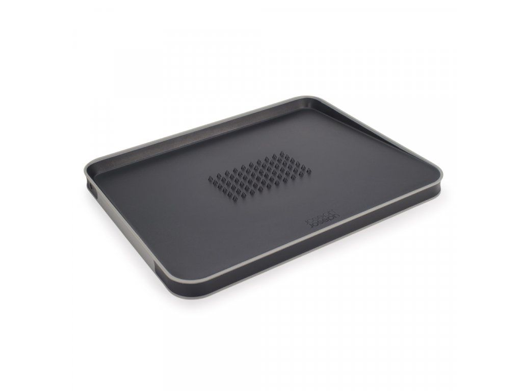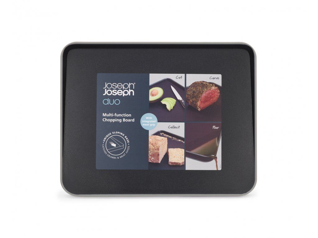 Na šikmém povrchu dvojstranného multifunkčního prkénka JOSEPH JOSEPH Duo Cut&Carve je tekutina sváděna k odtokové hraně. Prkénko je z jedné strany opatřeno protiskluznými jehlanovitými výstupky pro snadnější krájení masa, ze strany druhé je hladké. Na okrajích prkénka jsou protiskuzné hrany zabraňujíví pohybu prkénka na pracovní ploše. Velikost: 2,5 x 37,5 x 29,5 cm (VxŠxH).