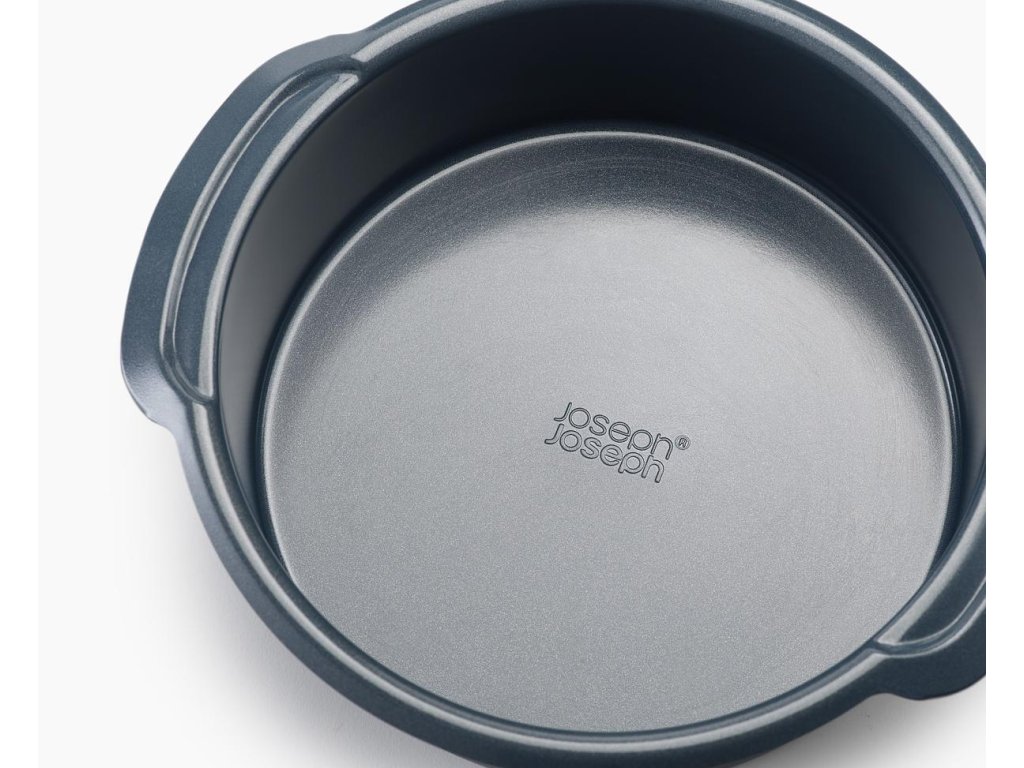 Stohovatelné kulaté dortové formy JOSEPH JOSEP Nest™ Bake jsou ergonomicky tvarovány tak, aby postranní velké rukojeti umožňovali snadné uchopení s kuchyňskými rukavicemi nebo chňapkami. Formy jsou vyrobeny z těžké uhlíkové oceli s odolným dvouvrstvým nepřilnavým povrchem bez obsahu PTFE, PFAS, PFOA, olova a kadmia. Lze je úhledně stohovat a skladovat. Mezery mezi formami umožňují proudění vzduchu a jsou prevencí proti poškrábání nepřilnavých povrchů.