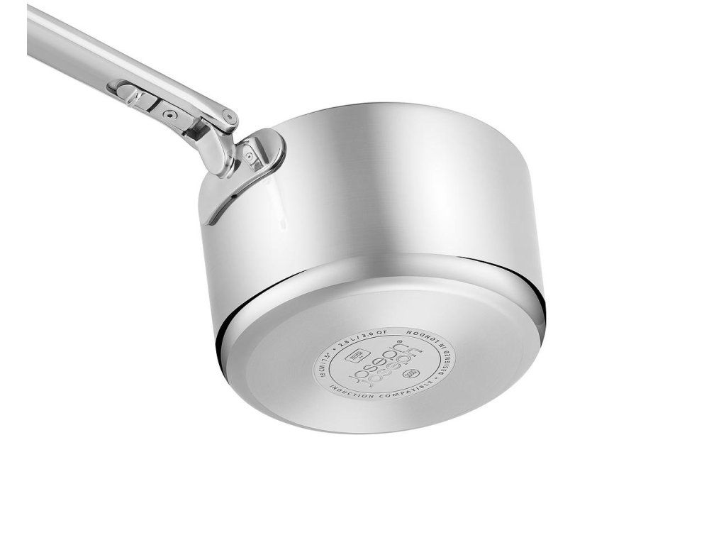 Nádobí Space Steel má robustní třívrstvou konstrukci s leštěným nerezovým vnějším povrchem, hliníkovým jádrem zajišťujícím rovnoměrnou distribuci tepla a vnitřním matným nerezovým povrchem. Je vhodné pro užití se všemi druhy sporáků a varných desek včetně indukčních. Užití pro zapékání v troubě je možné do teploty 232ºC (Gas Mark 8), s poklicí do teploty 200ºC (Gas Mark 6).