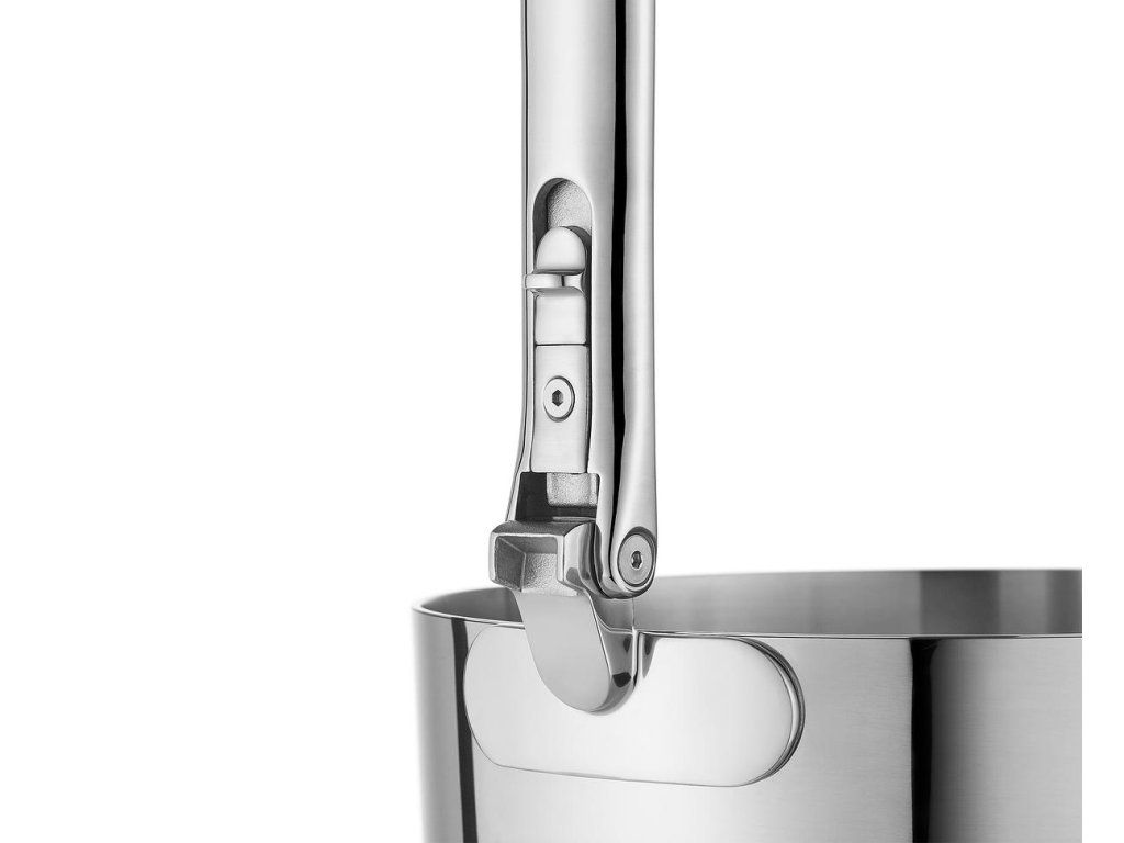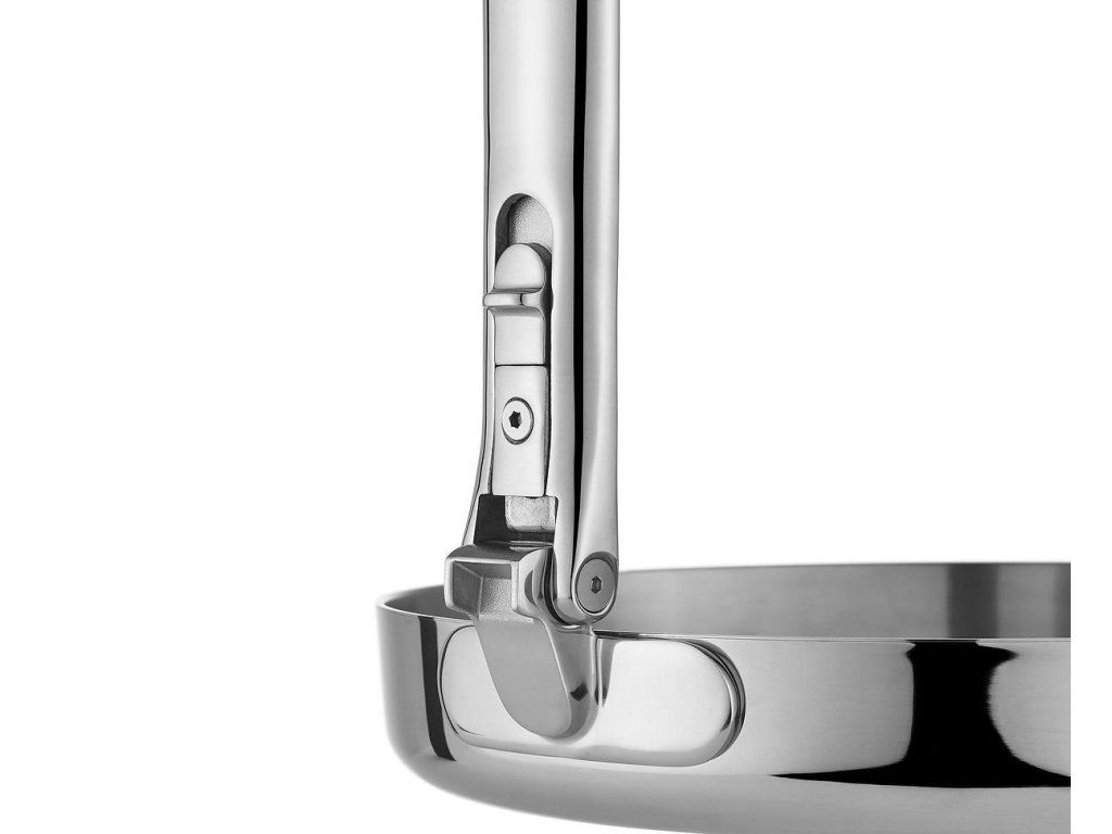 Díky nerezovým skládacím rukojetím s patentovanou technologii SwingLock lze nádobí v zásuvkách a skříňkách stohovat. Ušetříte tak 50% úložného prostoru. Sklopné jsou i velké nerezové úchyty umožňující u větších nádob manipulaci oběma rukama. Skleněné police jsou vyrobeny z tvrzeného skla. Sklopné úchyty poklic umožňují jejich úsporné skladování ve stojánku (45053). Pro ochranu povrchů nádob při stohování doporučujeme užití ochranných vložek (45052). Nádobí lze mýt v myčce. Pro prodloužení životnosti doporučujeme ruční mytí. Z důvodu rizika poškrábání při vaření nepoužívejte nerezové nástroje.