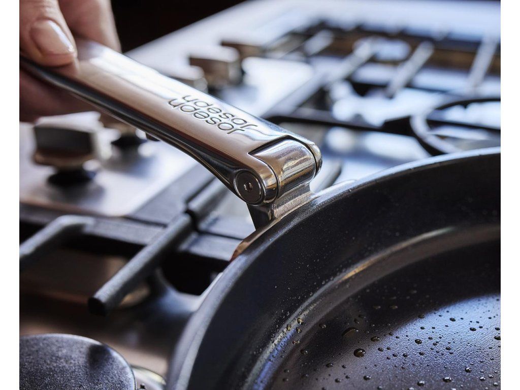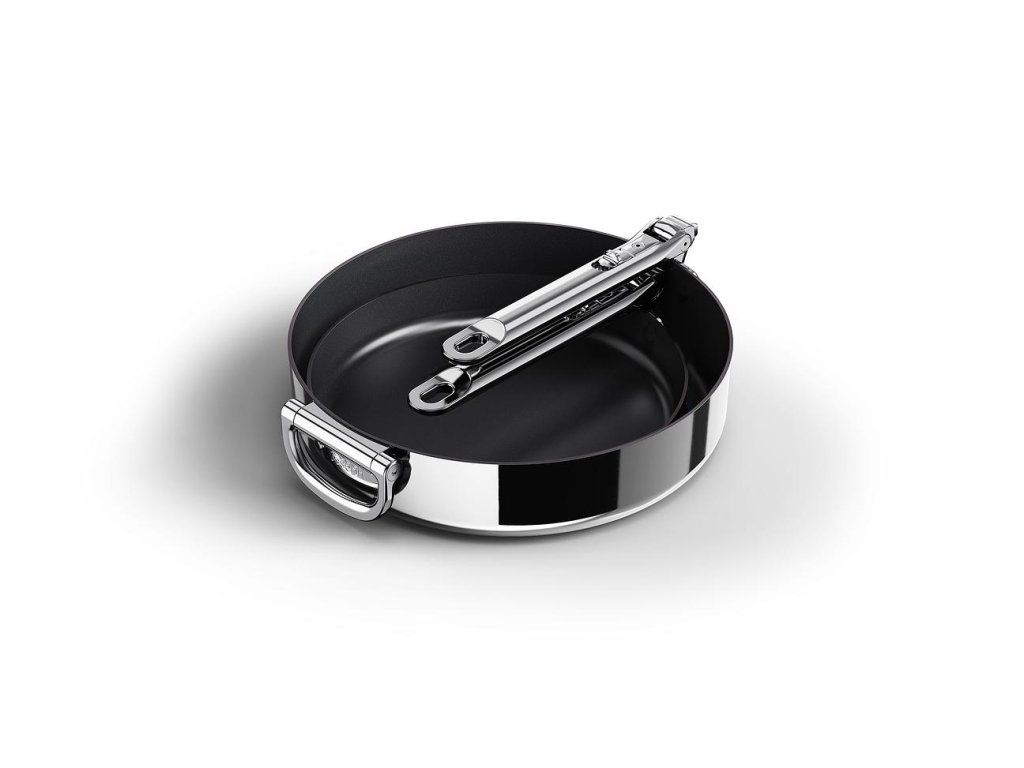 Díky nerezovým skládacím rukojetím s patentovanou technologii SwingLock lze nádobí v zásuvkách a skříňkách stohovat. Ušetříte tak 50% úložného prostoru. Sklopné jsou i velké nerezové úchyty umožňující u větších nádob manipulaci oběma rukama. Skleněné police jsou vyrobeny z tvrzeného skla. Sklopné úchyty poklic umožňují jejich úsporné skladování ve stojánku. Pro ochranu povrchů nádob při stohování doporučujeme užití ochranných vložek (45052). Nádobí lze mýt v myčce. Pro prodloužení životnosti doporučujeme ruční mytí. Z důvodu rizika poškrábání při vaření nepoužívejte nerezové nástroje.
