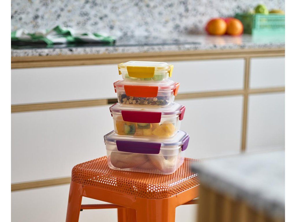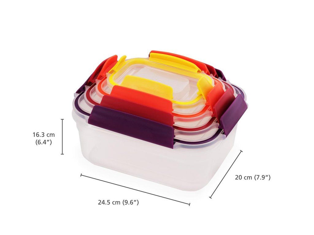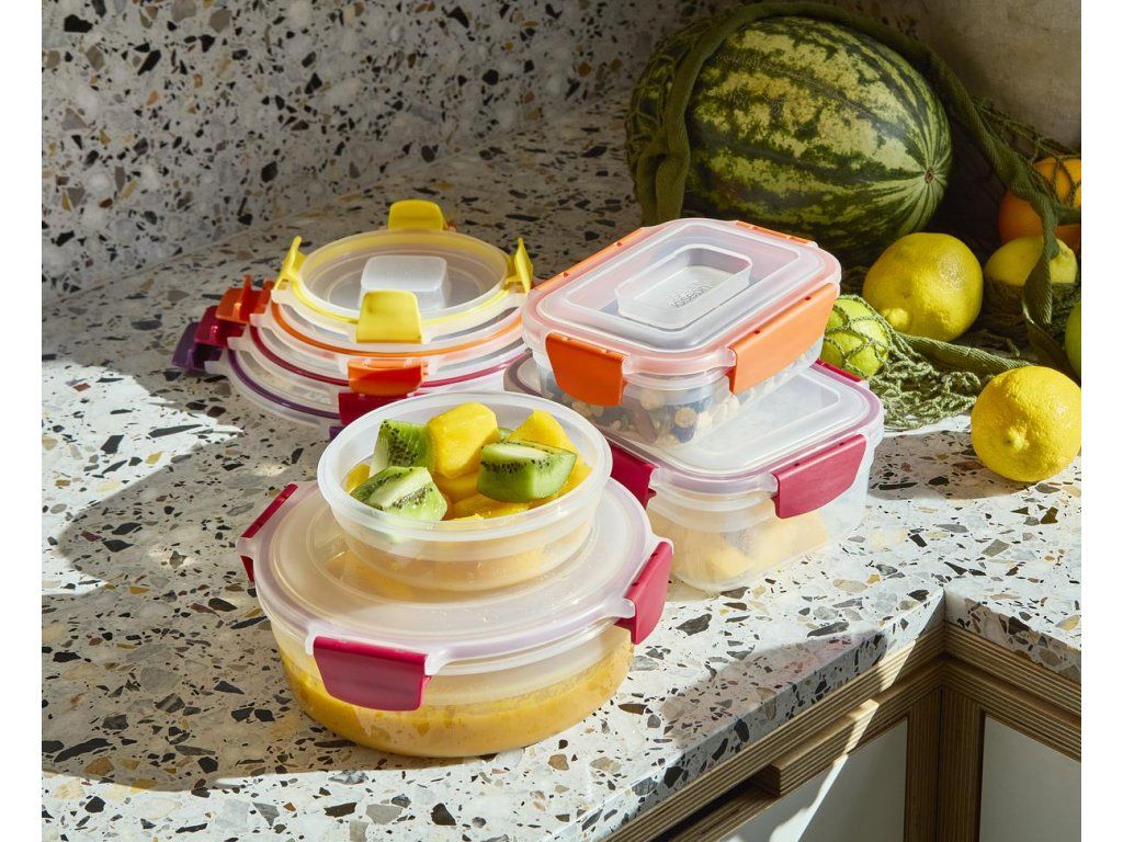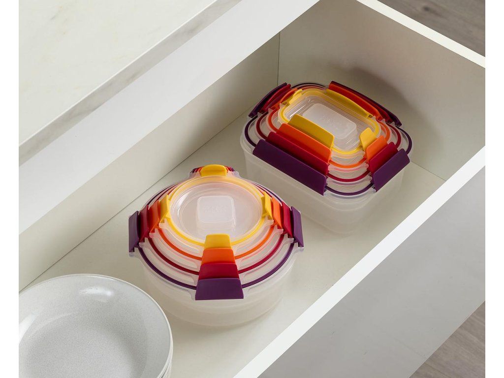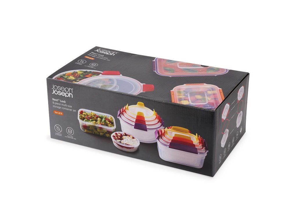 Nádoby Nest™ Lock s uzamykatelnými víčky jsou navrženy pro snadné a prostorově úsporné skladování potravin. Lze je úhledně stohovat a díky barevnému sjednocení zacvakávacích víček a značek na dnech nádobek snadno párovat podle velikosti. Nádoby Nest™ Lock jsou vzduchotěsné a 100% vodotěsné. Lze je užít pro ohřev v mikrovlnné troubě i skladování potravin v lednici. Výborně poslouží i jako rodinné lunch boxy na cesty. Při užití pro ohřev v mikrovlnné troubě víčko volně položte na nádobu (nádobku neuzavírejte). Vyvarujte se přehřívání potravin s vysokým obsahem oleje, tuků nebo cukru. Dbejte opatrnosti při vyjímání ohřátých nádob z mikrovlnné trouby. Nádobky nejsou určeny pro ohřev v běžných troubách a grilech.