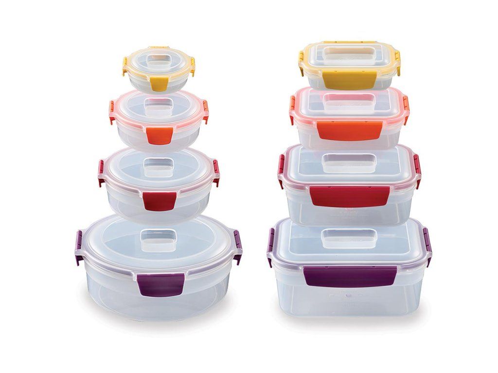 Nest Lock 1000013 / 2 sady: 4-dílná kulatá a 4-dílná obdélníková obdélníkové - 1x1,85l, 1x1,1l, 1x540ml, 1x230ml / velikost sady: 16,3 x 24,5 x 20 cm (VxŠxH) kulaté - 1x380ml, 1x670ml, 1x1l, 1x1,6l / velikost sady: 12,6 x 26,8 x 26,8 cm (VxŠxH)
