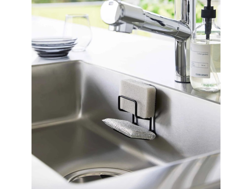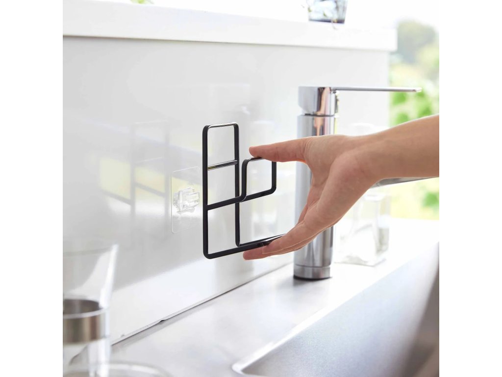 Držák se upevňuje pomocí háčku se samolepící fólií Film Hook. Film Hook je určen pro instalaci na hladký neporézní povrch. Kovový držák má prostor pro běžnou houbičku a drátěnku. Umožňuje jejich rychlé schnutí. Myjte ručně. Maximální zatížitelnost: 500 g. Dodáván v bílé (7017) a černé barvě (7018).