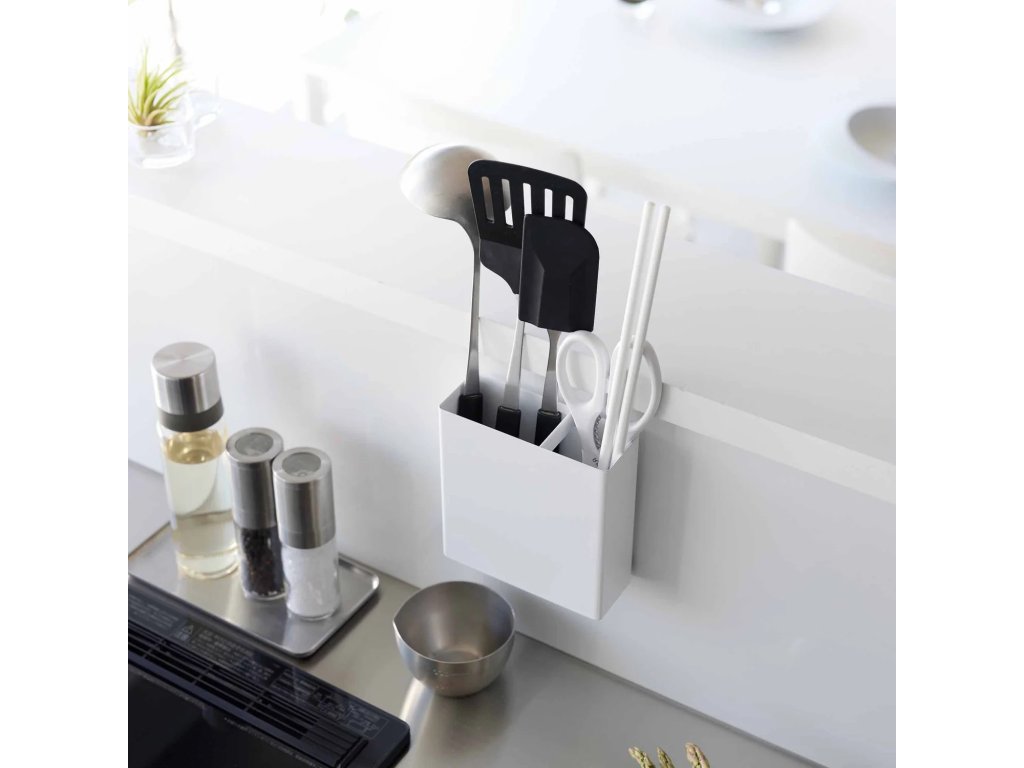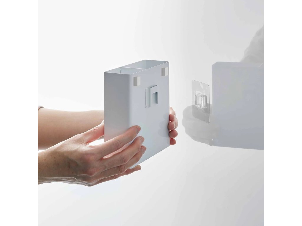 Nástěnný držák kuchyňských nástrojů se na stěnu upevňuje pomocí háčku se samolepící fólií Film Hook. Film Hook je určen pro instalaci na hladký neporézní povrch. Kovový držák je dodáván s odnímatelnou silikonovou podložkou, která zlepšuje jeho přilnavost, Vestavěná přepážka udržuje náčiní úhledně uspořádané. Maximální zatížitelnost: 2 kg. Čistěte navlhčeným hadříkem. Dodáván v bílé (2157) a černé barvě (2158).