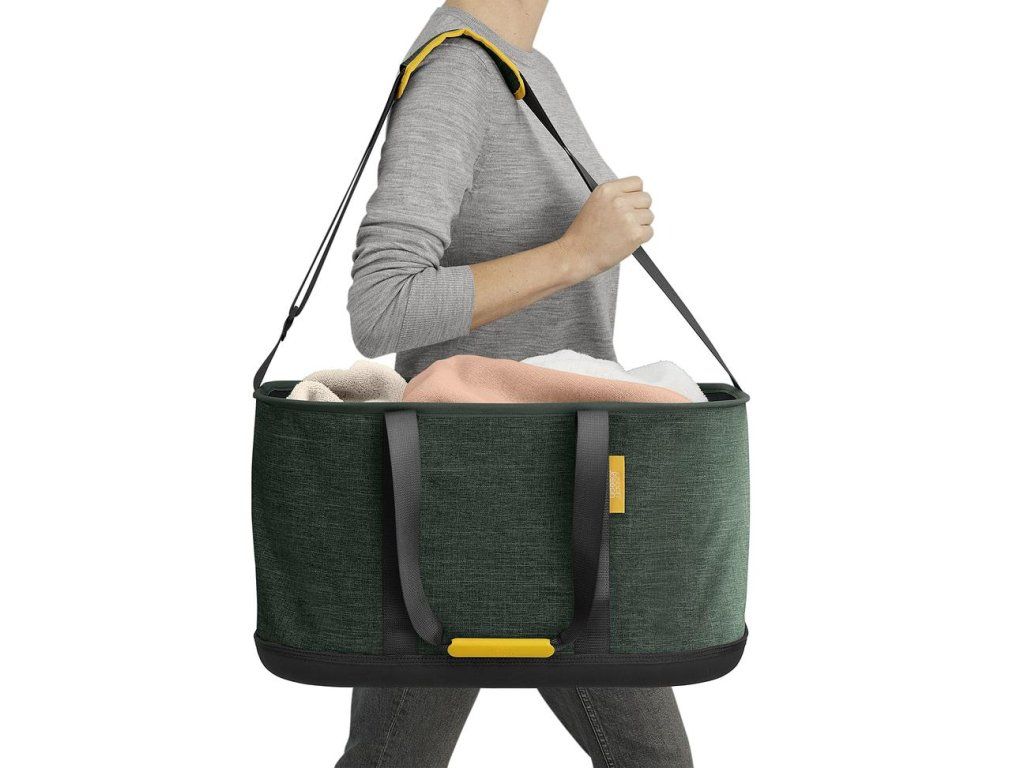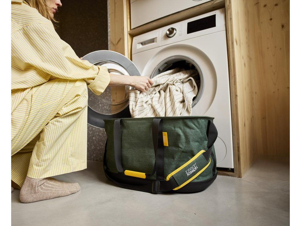 Koš na prádlo JOSEPH JOSEPH Hold-All složitelný naplocho pro snadné skladování. Díky nastavitelnému ramennímu popruhu je určen pro snadné přenášení. Vyrobeno z odolné a vodotěsné EVA tkaniny. Vnitřní povrch odolný vůči vlhkosti, snadno se čistí otíráním vlhký hadříkem.