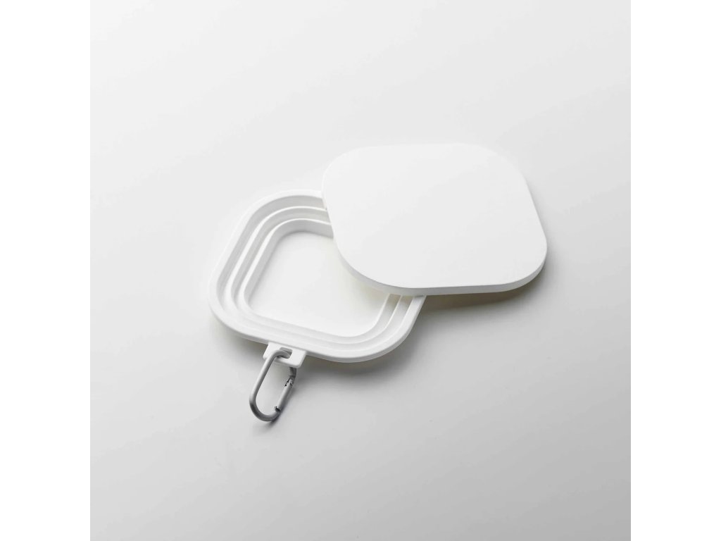 Přenosná miska na krmivo pro domácí mazlíčky. Víčko umožňuje uzavření použité misky. Přiložená karabinka pro snadné připevnění k tašce nebo opasku. Vyrobeno z praktického a odolného silikonu.
