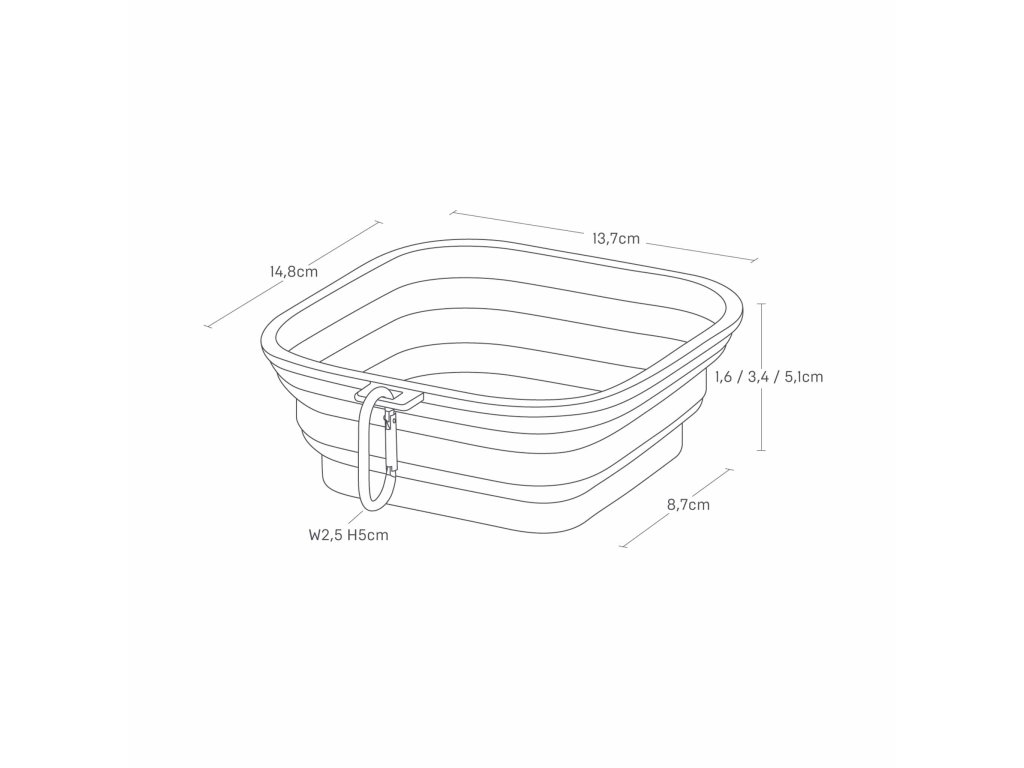 velikost - složená: 13,7 x 1,8 x 14,8 cm (VxŠxH) / při použití : v.3,4 cm - 300 ml, v.5,1 cm - 450 ml