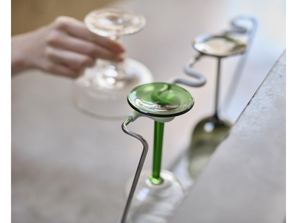 Prostorově úsporný skládací sušák sklenic na víno – JOSEH JOSEPH DrySmart. Umožňuje najednou sušit až 4 sklenice zároveň. Sušák má základnu zachytávající odkapávající vodu. Po použití jej lze úhledně složit. Protiskluzové nožičky zajišťují stabilitu.