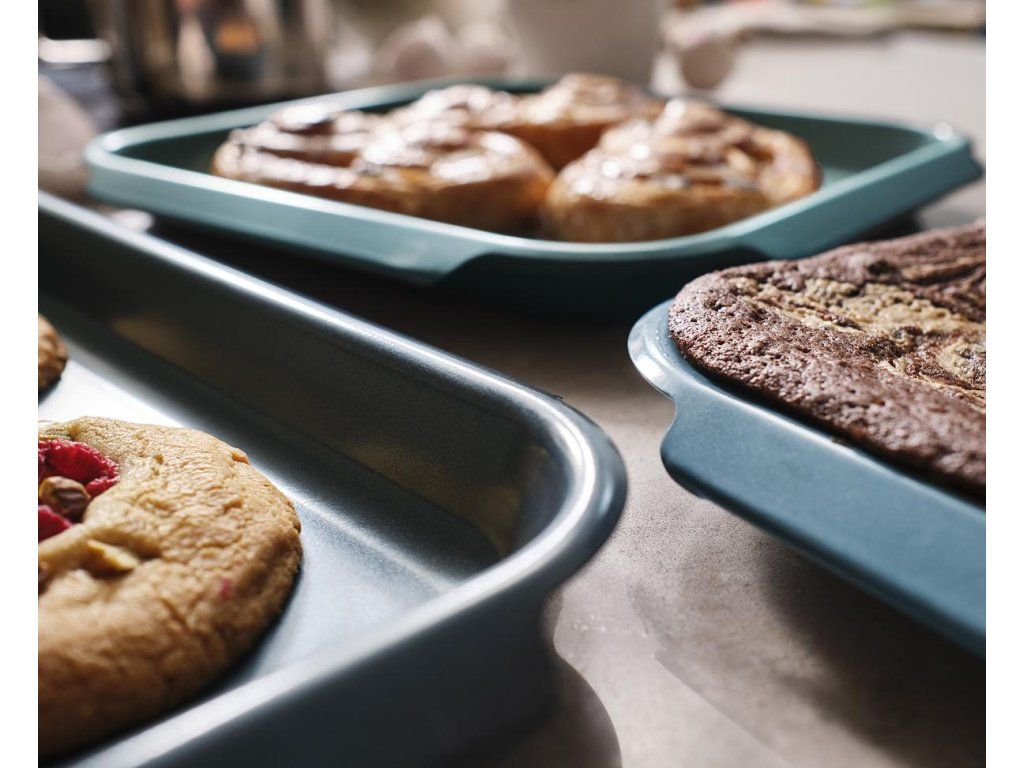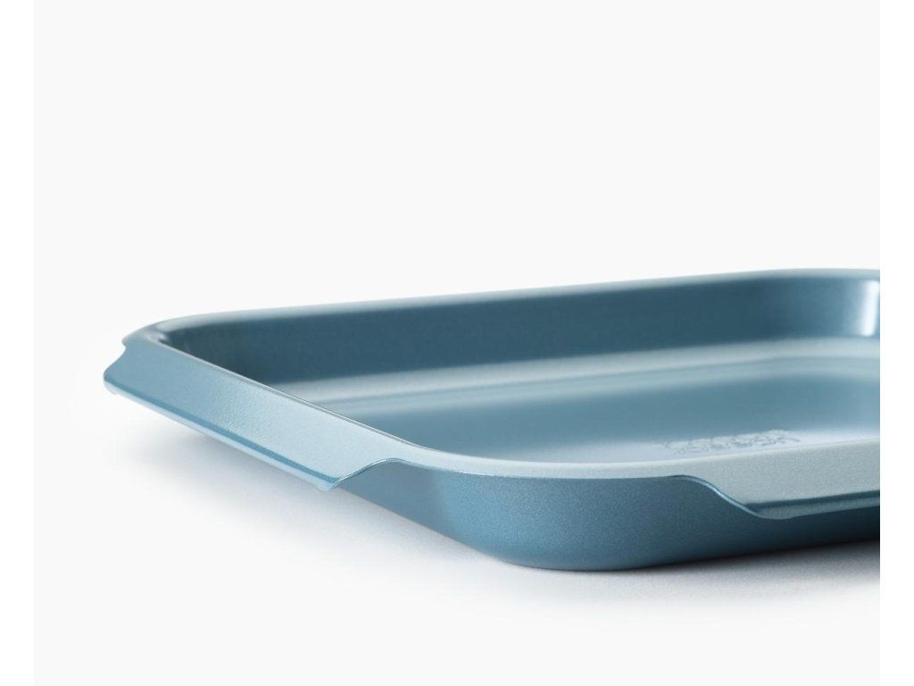 Plechy Nest™ Bake myjte pouze ručně. Před prvním použitím je omyjte v teplé mýdlové vodě a důkladně osušte. Plechy nepoužívejte s kovovými nástroji ani nečistěte abrazivními čisticími prostředky – zabráníte tak poškození nepřilnavého povlaku. Při manipulaci s horkým plechem vždy používejte ochranné kuchyňské rukavice/ chňapky a před čištěním nechte plech vychladnout. Nevhodné pro použití v mikrovlnných troubách, grilech nebo varných deskách. Maximální teplota užití: 232 °C (450 °F), plynová značka 8.