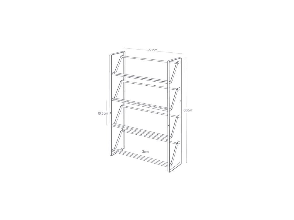 Kovový stojan na 8 - 12 párů bot - YAMAZAKI Tower 2392. Boty se vkládají pod úhlem - stojan zabírá méně místa. Velikost: 80 x 53 x 17,5 cm (VxŠxH).
