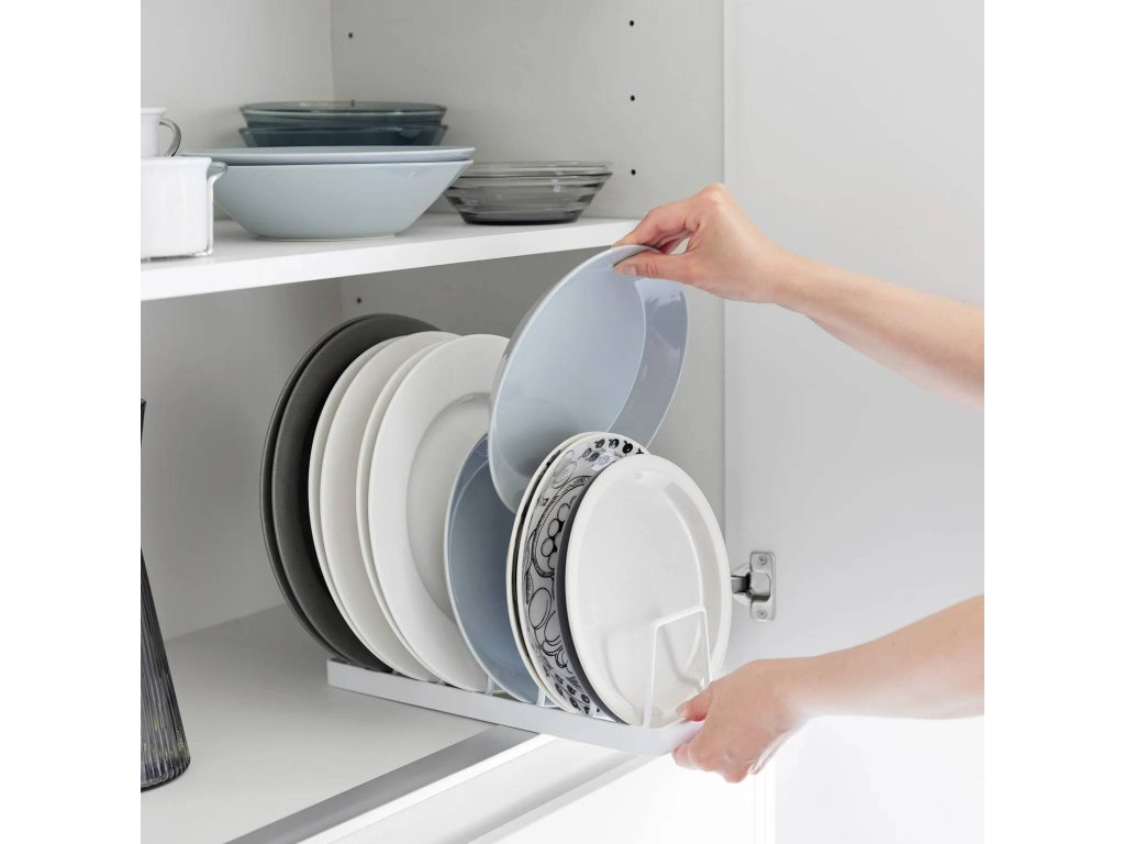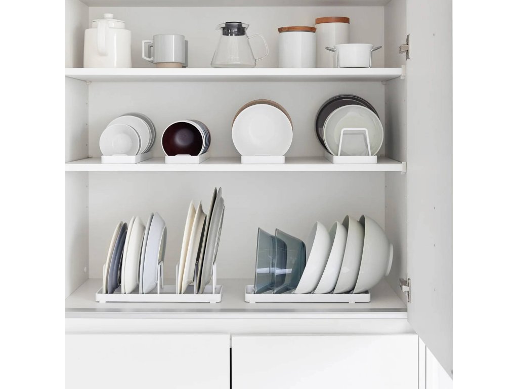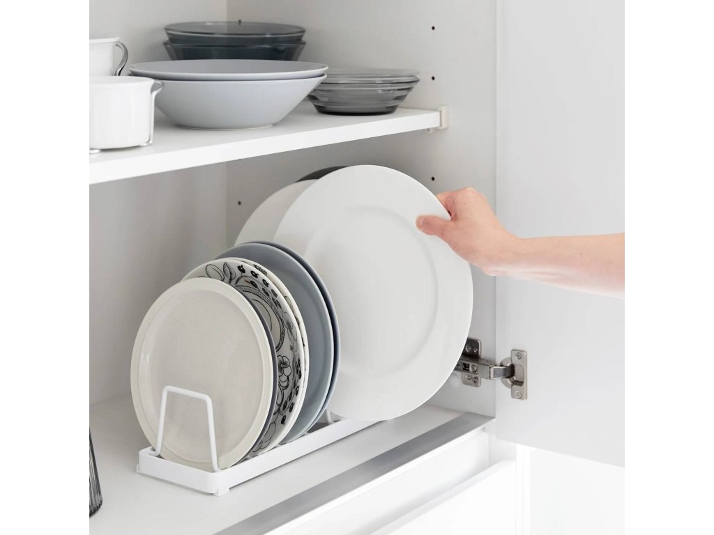 Kovový kompaktní stojan pro bezpečné uložení a snadný přístup k talířům – YAMAZAKI Tower 1375 (bílý) / 1376 (černý). Svislé řešení pro ukládání talířů odstraňuje riziko poškrábání způsobené jejich stohováním. Usnadňuje přístup a vede k efektivnímu využití prostoru skříňky. Stojan je kompatibilní s talíři o velikost 18-30 cm a výšce až 4 cm. Čtyři ochranné nožky chrání povrch a zajišťují lepší stabilitu. Pouze ruční mytí.