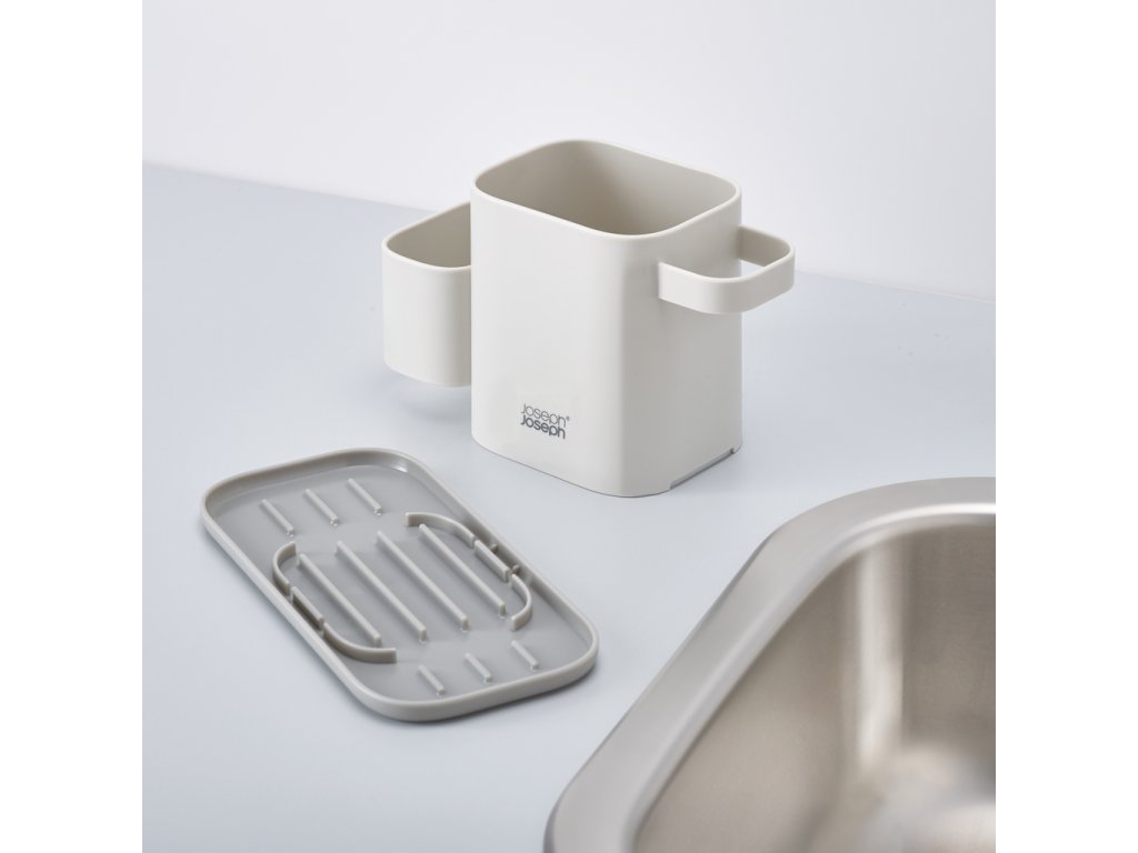 Stojánek ke dřezu JOSEPH JOSEPH Duo 851673. Prostor pro saponát, houbičku, konzolka na kartáč, odkapávací miska. Rozebíratelný pro snadné čištění. Materiál: polypropylen. Výrobek myjte ručně.