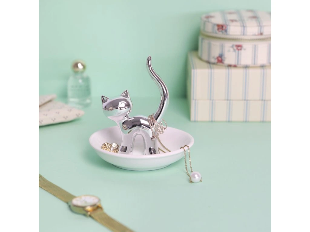 Porcelánový stojánek na prstýnky. Velikost: 8,5 x 10 x 10 cm (VxŠxH).