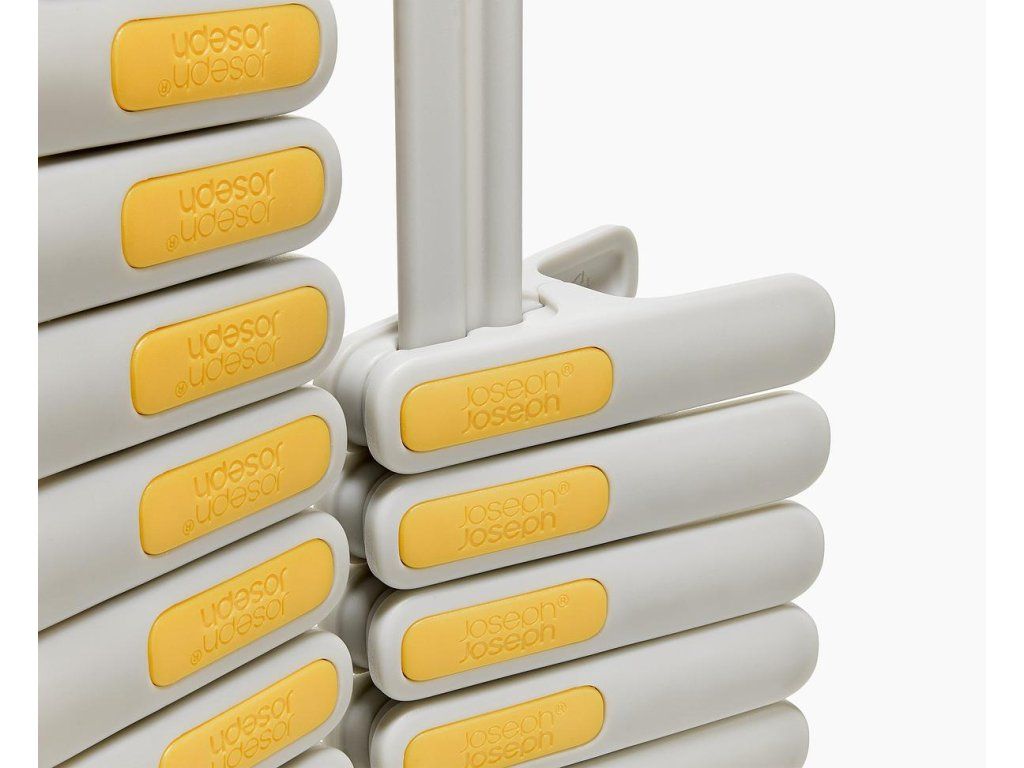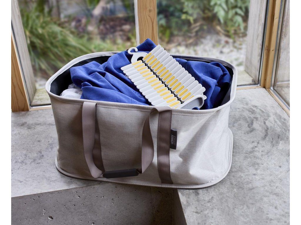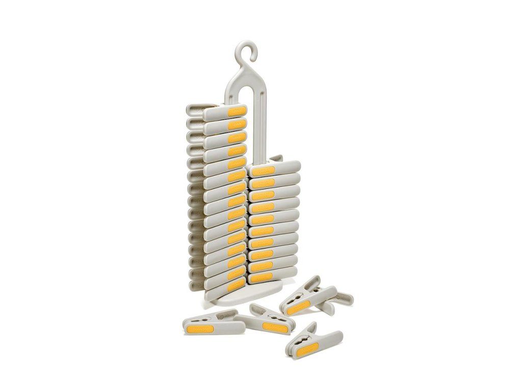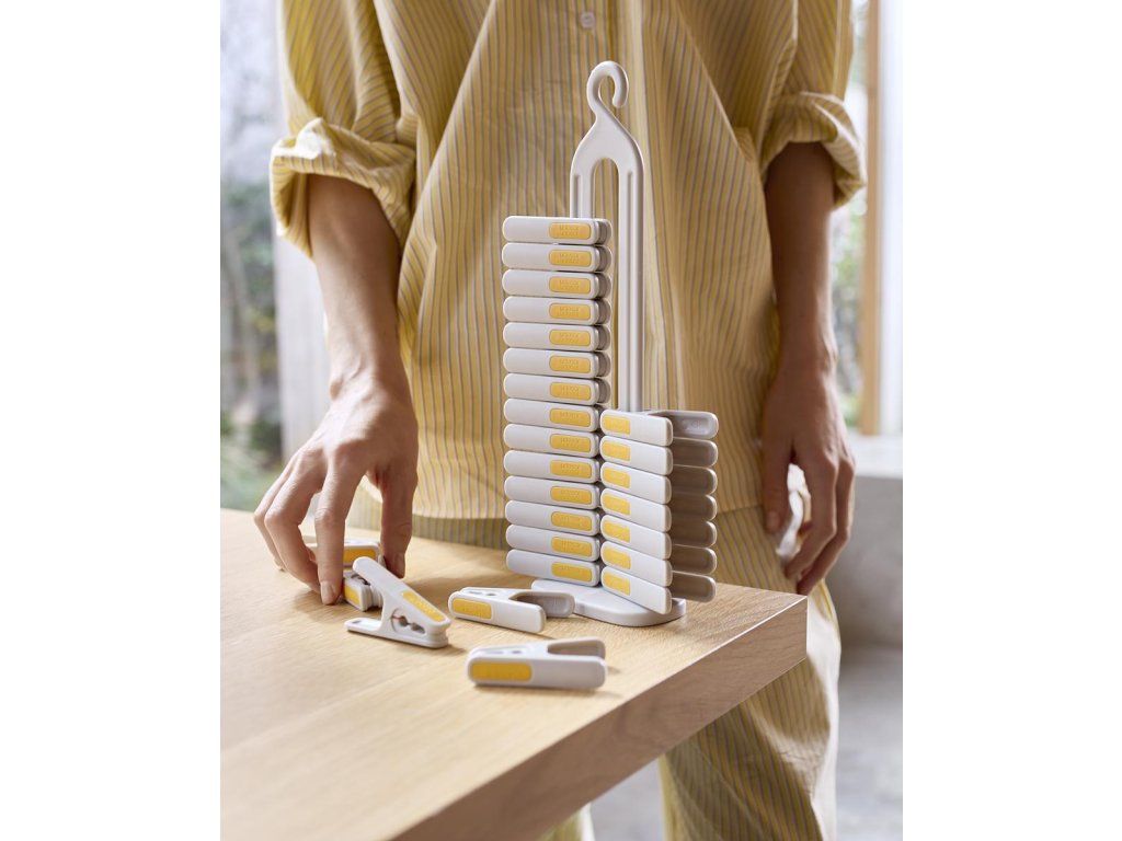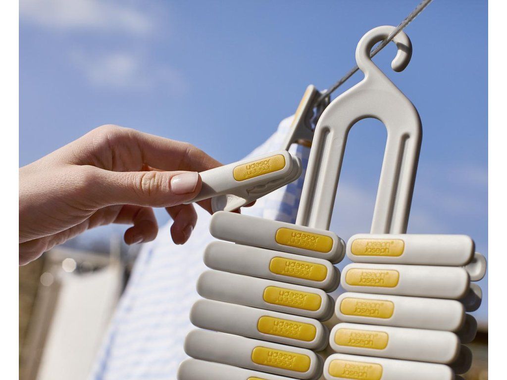 Sada kolíčků na prádlo s úložným stojanem JOSEPH JOSEPH PegStore 5000013. 30 kolíčků na prádlo odolných vůči UV záření s vroubkované zoubky pro bezpečné uchopení. Stojan má háček k zavěšení na prádelní šňůru.