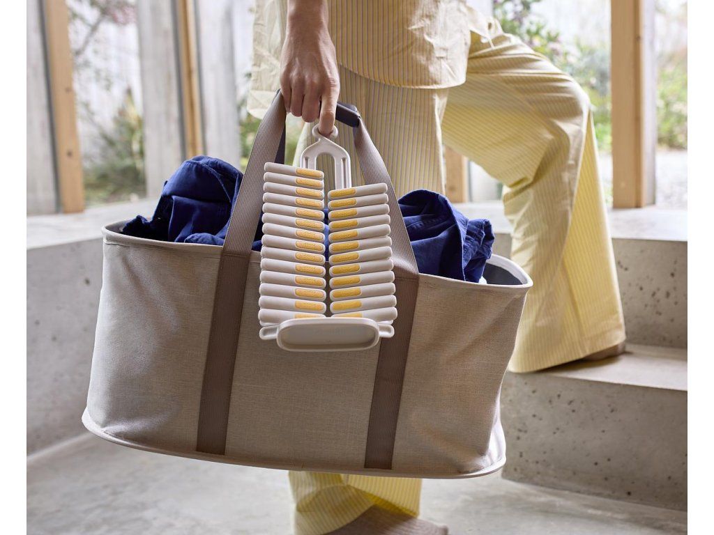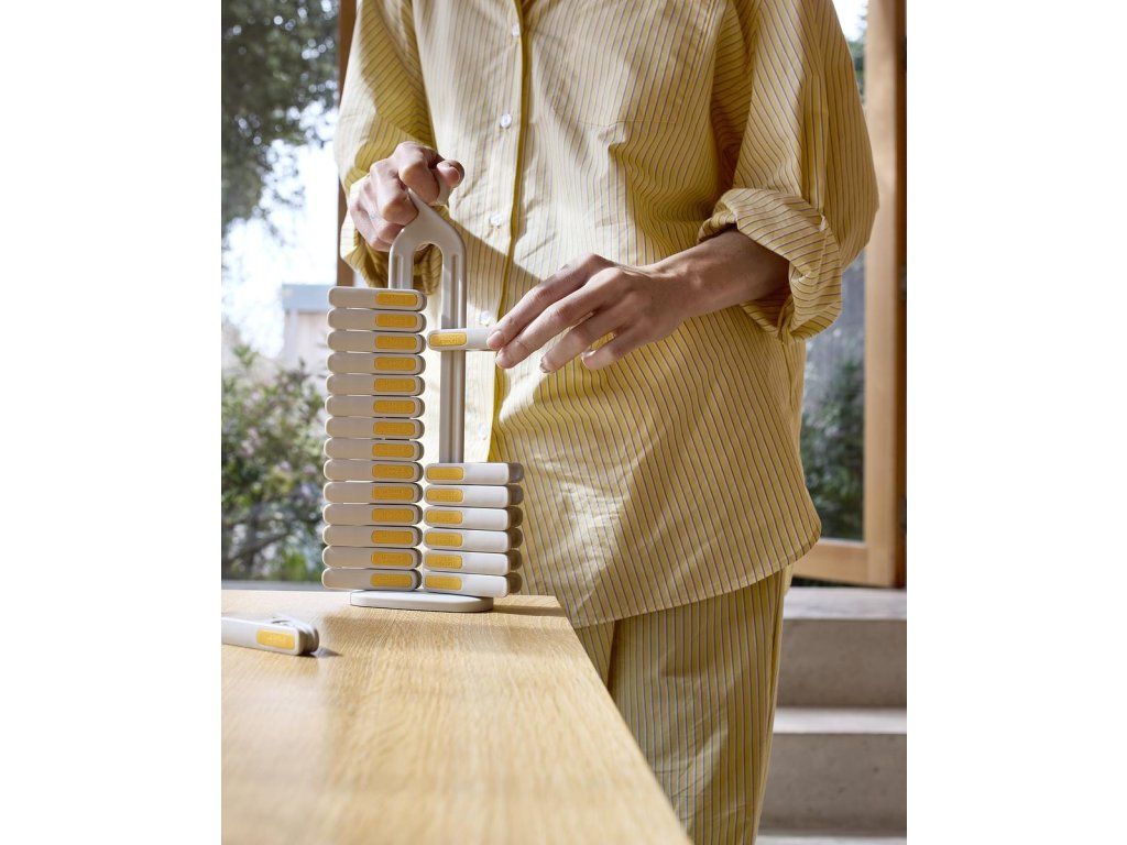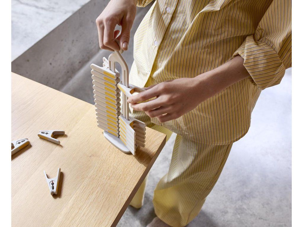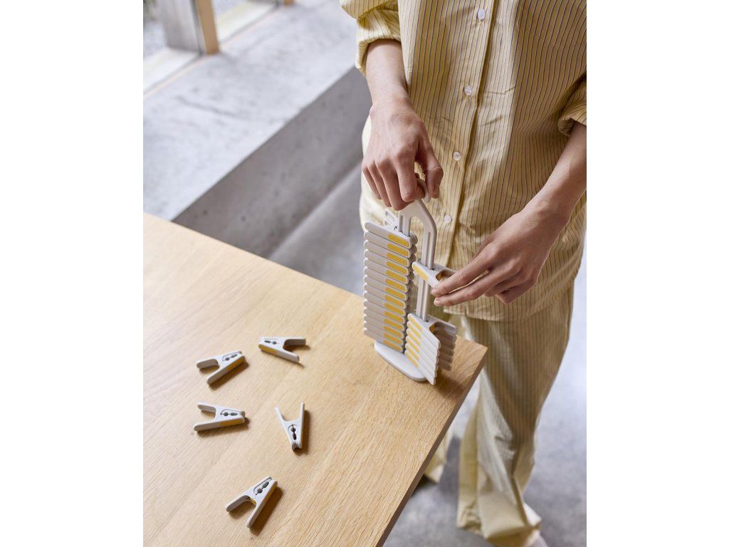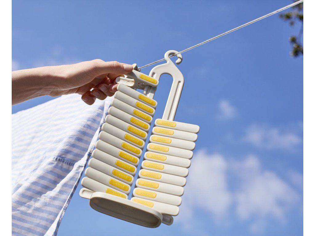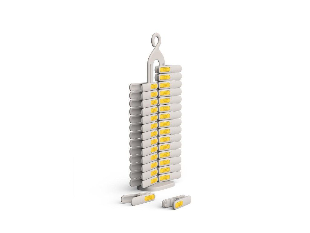 Sada kolíčků na prádlo s úložným stojanem JOSEPH JOSEPH PegStore 5000013. 30 kolíčků na prádlo odolných vůči UV záření s vroubkované zoubky pro bezpečné uchopení. Stojan má háček k zavěšení na prádelní šňůru.