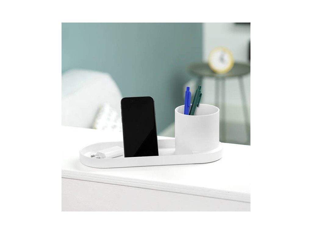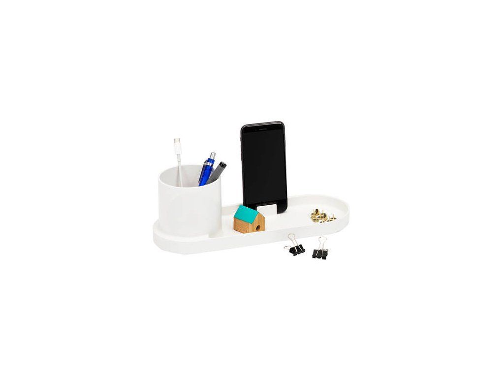 Organizér FŌRMA April vám poslouží na pracovním stole na tužky a telefon nebo v předsíni k odložení klíčů, brýlí atd. Čistý nadčasový design plastového stojánku je ozdobou moderních kancelářských i bytových interiérů. Velikost: 9,6 x 28,7 x 10,5cm (VxŠxH). Snadno čistitelný běžnými saponáty.