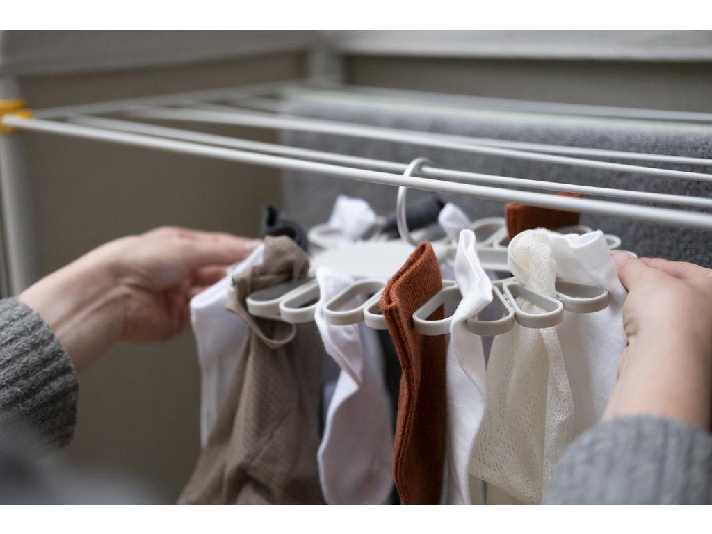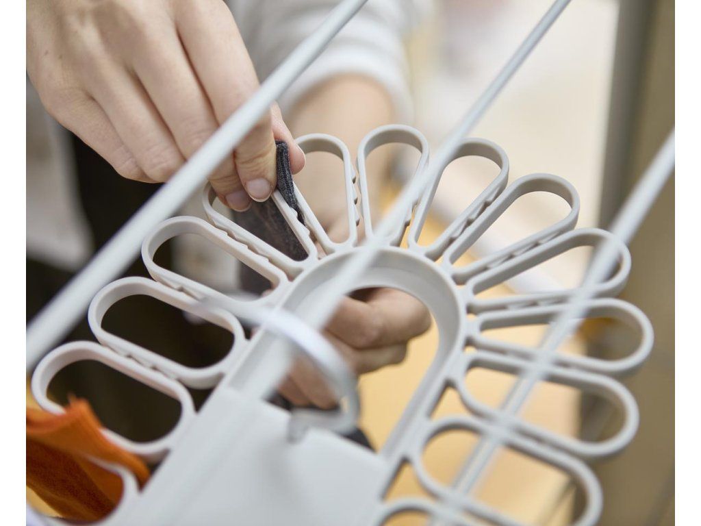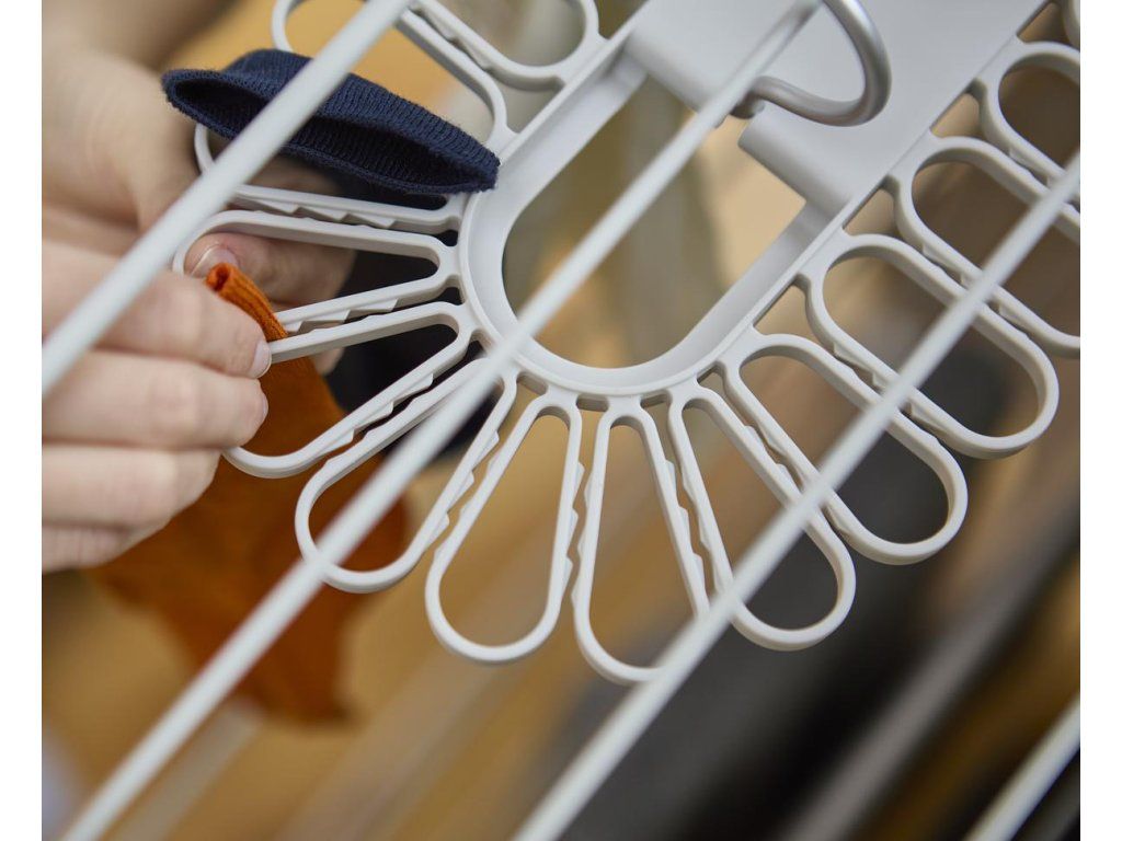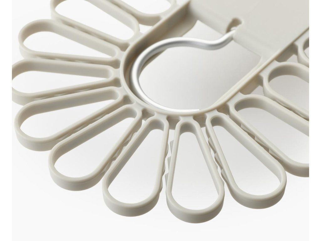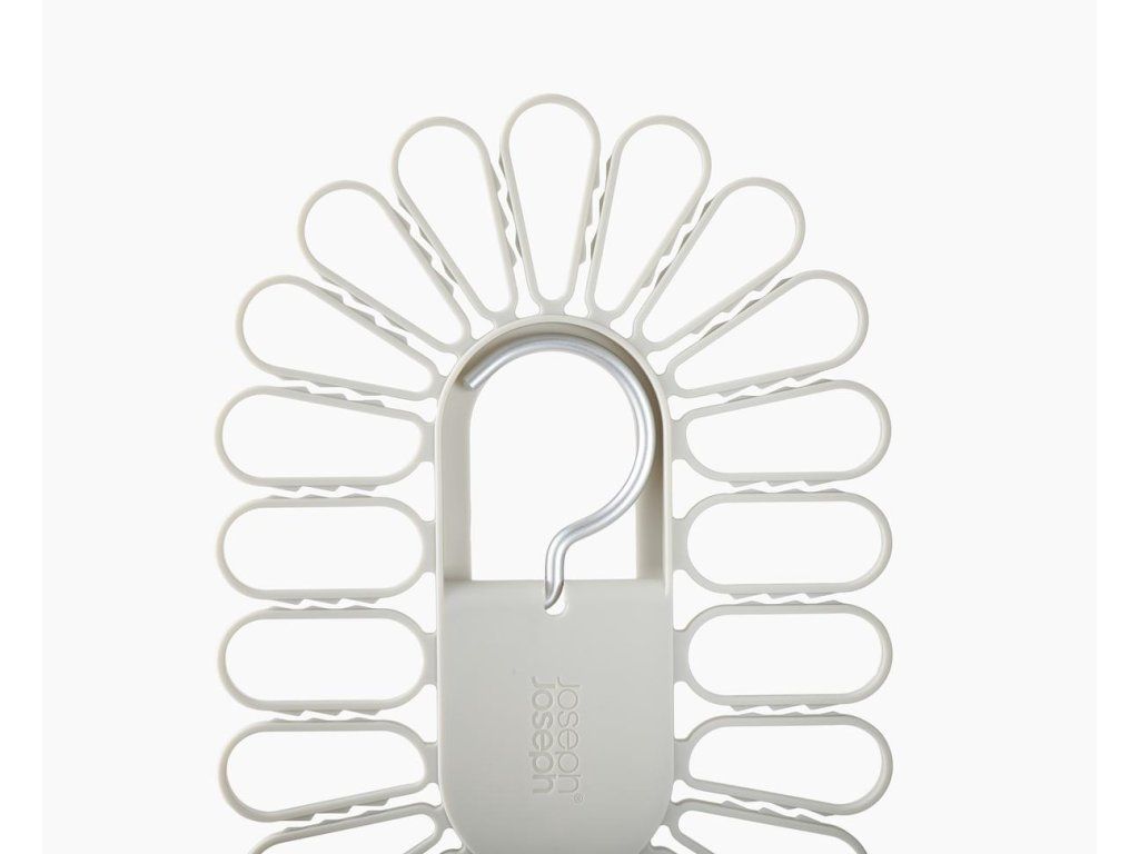 Nápaditý sušák JOSEPH JOSEPH Petal je ideální pro sušením menších kusů prádla. Ponožky nebo spodní prádlo jednoduše vkládáte mezi oválné svorky rozmístěné po obvodu sušáku. Model 55051 pojme až 22 kusů, model 55052 až 32 kusů prádla. Sušák má dva sklopné hliníkové háky pro bezpečné vnitřní nebo venkovní zavěšení. Složení háků naplocho umožňuje prostorově úsporného skladování. Barevné provedení Ecru (barva surového hedvábí resp. neběleného plátna).