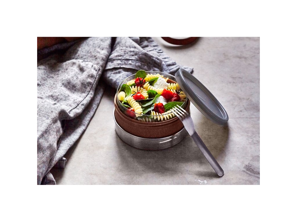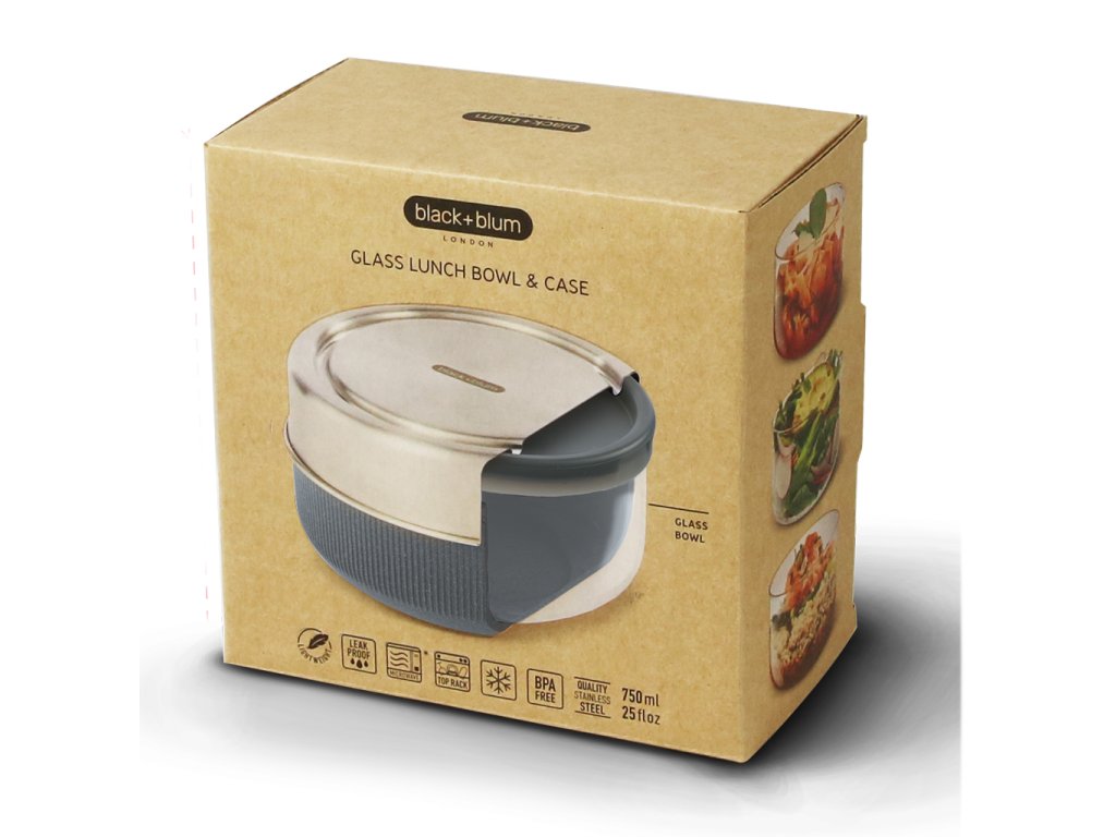 Nosíte si oběd do práce a hledáte užitečnou náhradu za plastové boxy? BLACK+BLUM Glass Lunch Bowl/Pot jsou cestovní sady na lehké polední jídlo s vnitřní skleněnou miskou. Vnitřní miska z borosilikátového skla je uzavíratelná těsnícím silikonovým víčkem (100% nepropustná). Vnější tepelně izolující obal chrání skleněnou misku proti rozbití. Jeho spodní část je vyrobena z polypropylenu s dřevovláknitou příměsí (ve dvou barevných provedeních), vrchní šroubovací díl je nerezový.