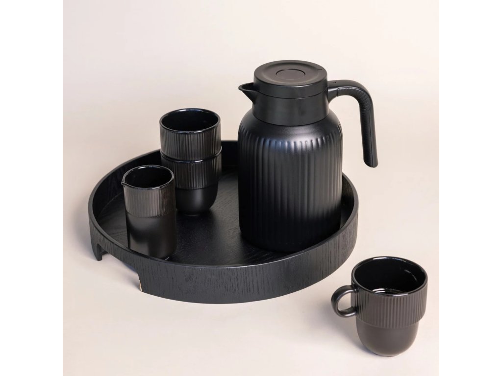 Termokonvice SAGAFORM Trine je vyrobena z nerezové oceli s dvojitou vakuovou izolací. Vnitřní povrch je potažen tenkou měděnou vrstvou. Vnější povrch je matný, práškově lakovaný. Termoska má víčko s tlačítkem umožňujícím servírování bez rozlití a šroubovací závit pro snadné otevření.