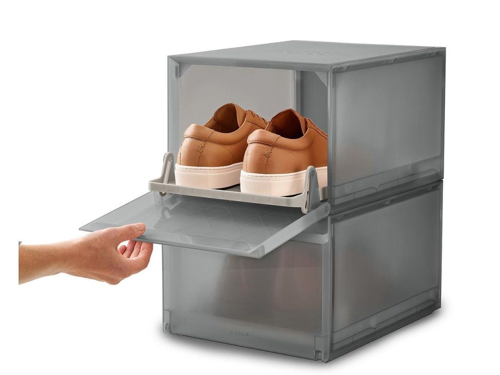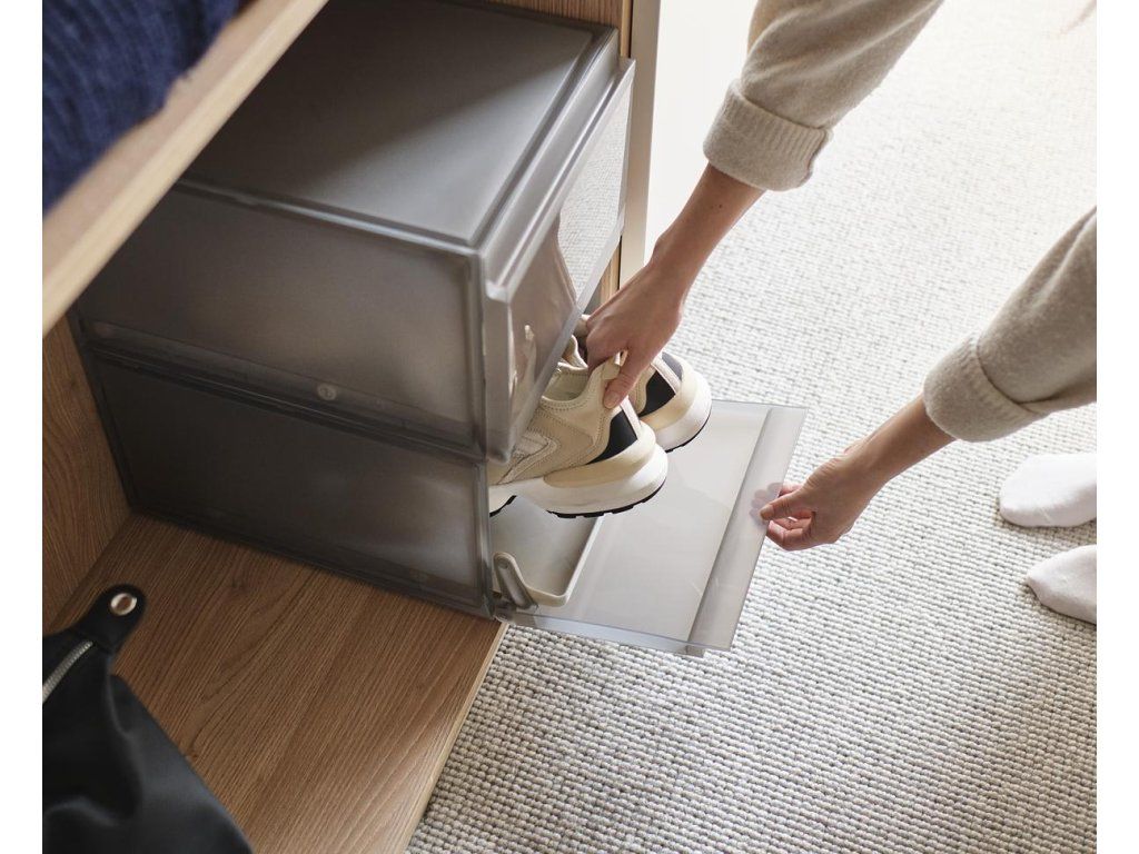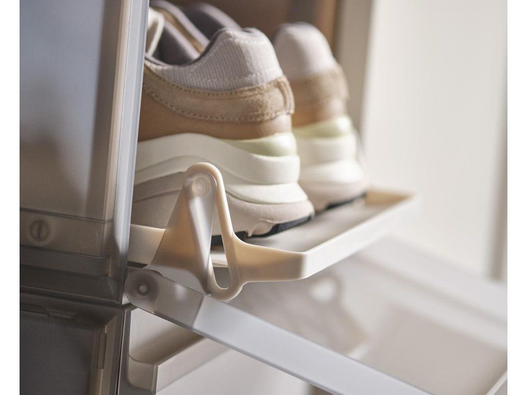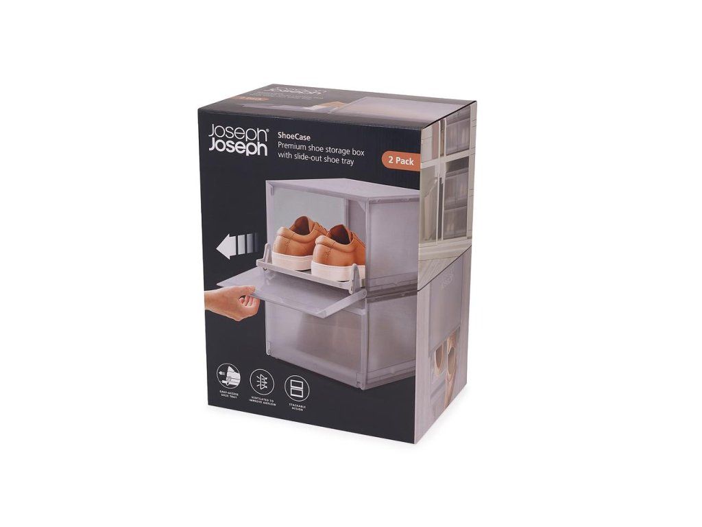 Úložný box na boty JOSEPH JOSEPH ShoeCase je vybaven přihrádkou, která se vysune při otevření čelního panelu. Chrání boty před prachem a nečistotami. Díky stohování slouží k úhlednému uložení obuvi v šatnících i ve volném prostoru. V zadní části má ventilační otvory zajišťující odvětrávání.