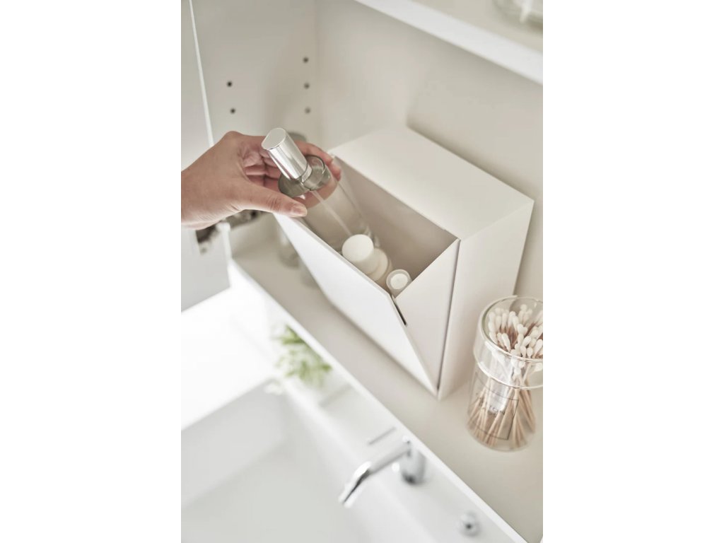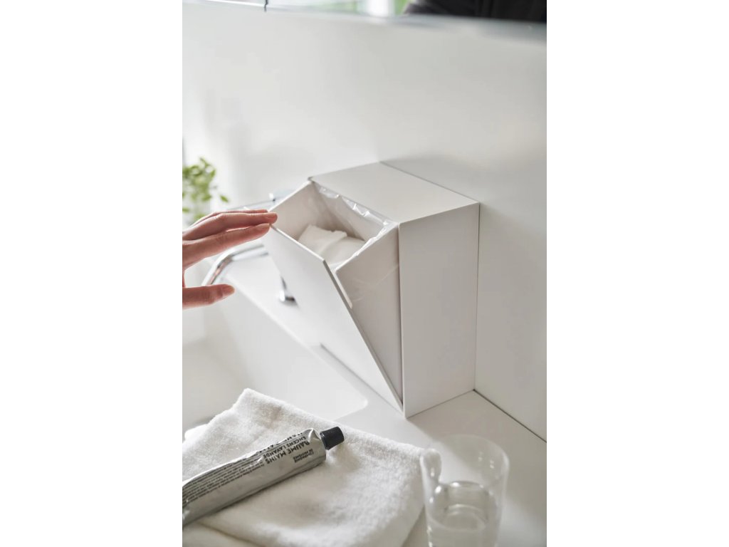 Úložný box YAMAZAKI Film Hook 5433, použitelný i jako malý odpadkový koš. K postavení na plochu nebo zavěšení na stěnu. Korpus z odolného ABS plastu. V případě instalace na stěnu se box nasazuje na nástěnný háček. Součástí háčku je upevňovací samolepící fólie, která box spolehlivě udrží na hladkém neporézním povrchu. Materiál: korpus - ABS, silikon / samolepící háček - polykarbonát, PET, silikon.