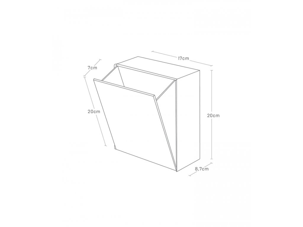 Velikost: 20 x 17 x 8,7-16 cm (VxŠxH) / objem 2l / nosnost 1kg.