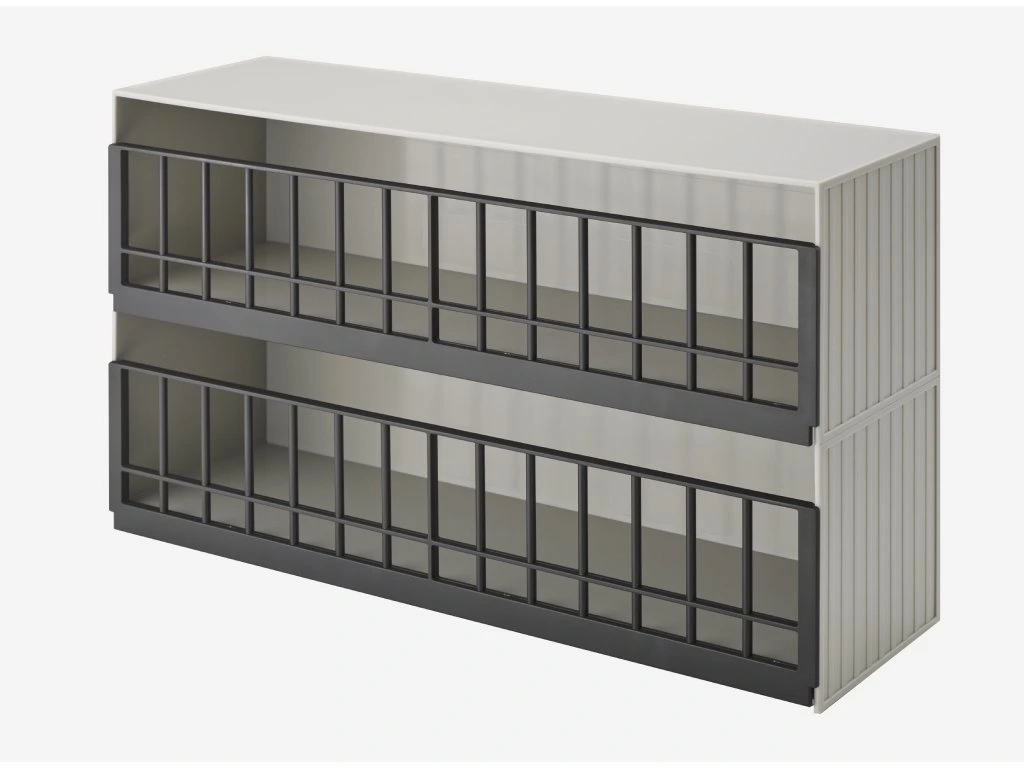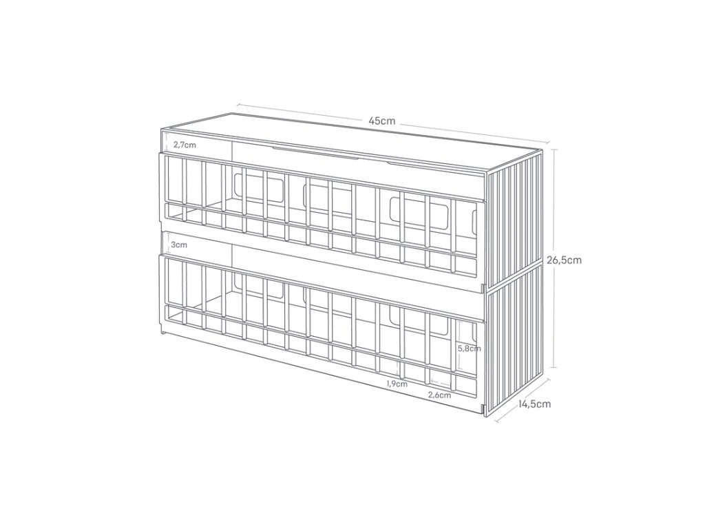 2-patrový úložný box na hračky - YAMAZAKI Tower 5808. Kovový korpus, ABS mřížky. Velikost: 26,5 x 45 x 14,5 cm (VxŠxH).
