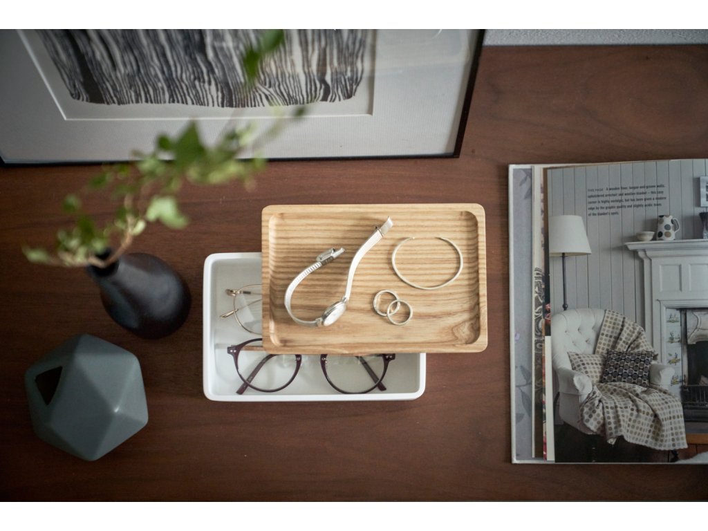 Praktický a elegantní úložný box s dřevěným víčkem – YAMAZAKI Rin 5167. Robustní korpus z materiálu polystone (plastová pryskyřice s přísadou práškového kamene), dřevěné víčko sloužící zároveň i jako odkladná miska. Velikost: 7 x 18,5 x 12,5 cm (VxŠxH).