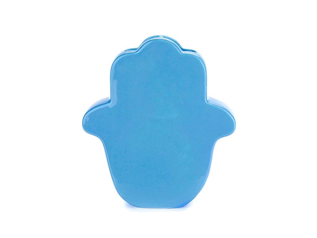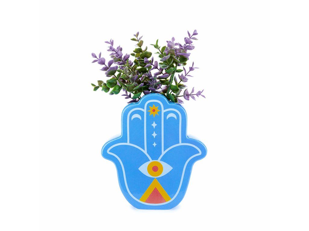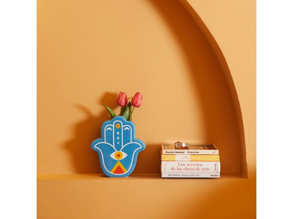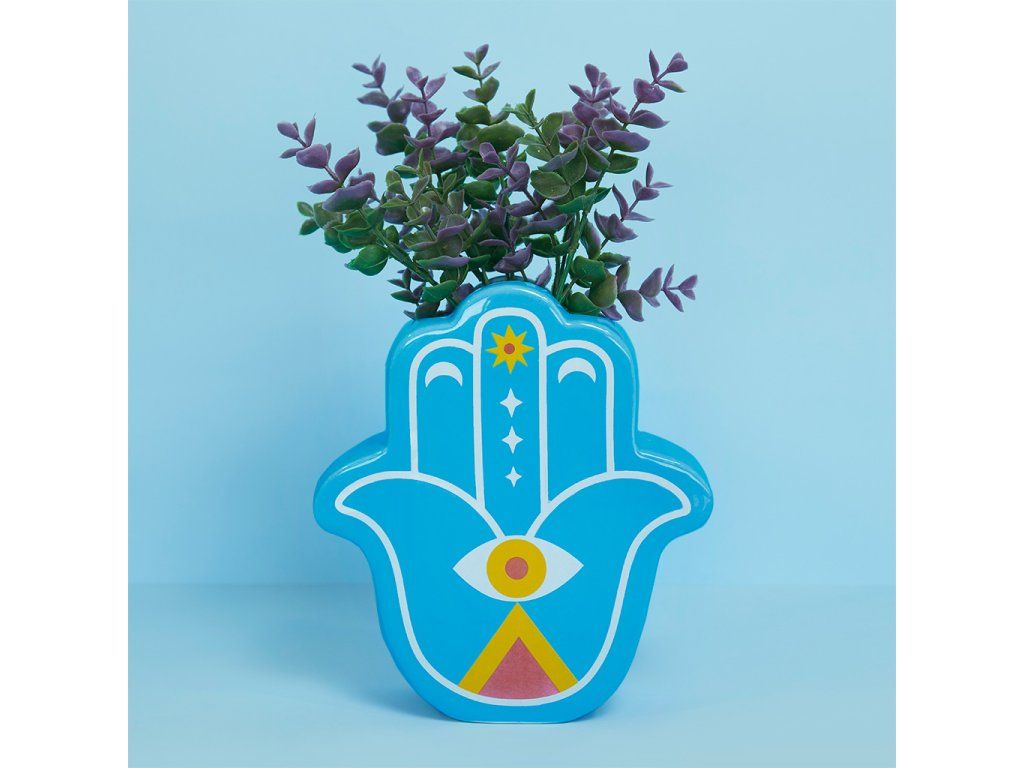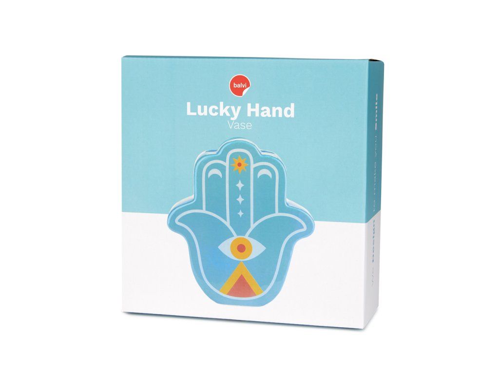Keramická váza BALVI Lucky Hand inspirovaná ochranným amuletem „šťastné ruky“, známým také jako Ruka Fátimy (islám), Marie (křesťanství), Miriam (judaismus). Velikost: 21 x 19 x 6 cm (VxŠxH).