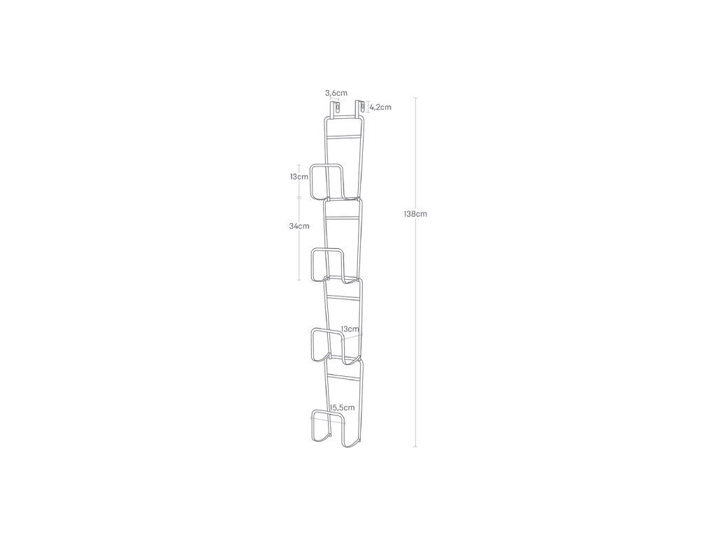 Kovový věšák na kabelky k zavěšení na dveře, montáž na stěnu nebo zavěšení na šatní tyč - YAMAZAKI 6508. Velikost: 137 x 19 x 18 cm (VxŠxH).