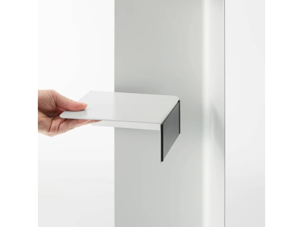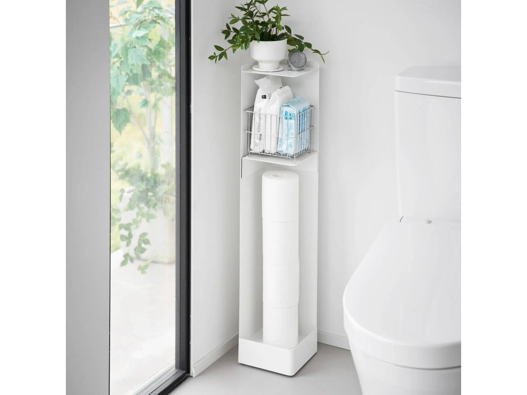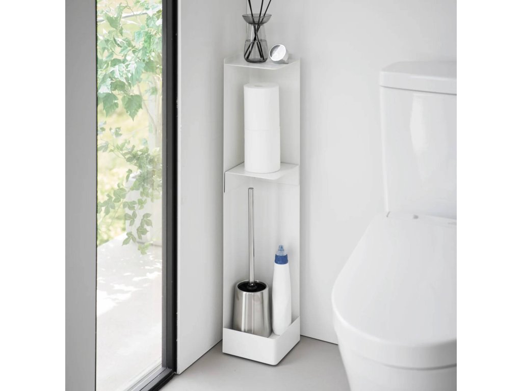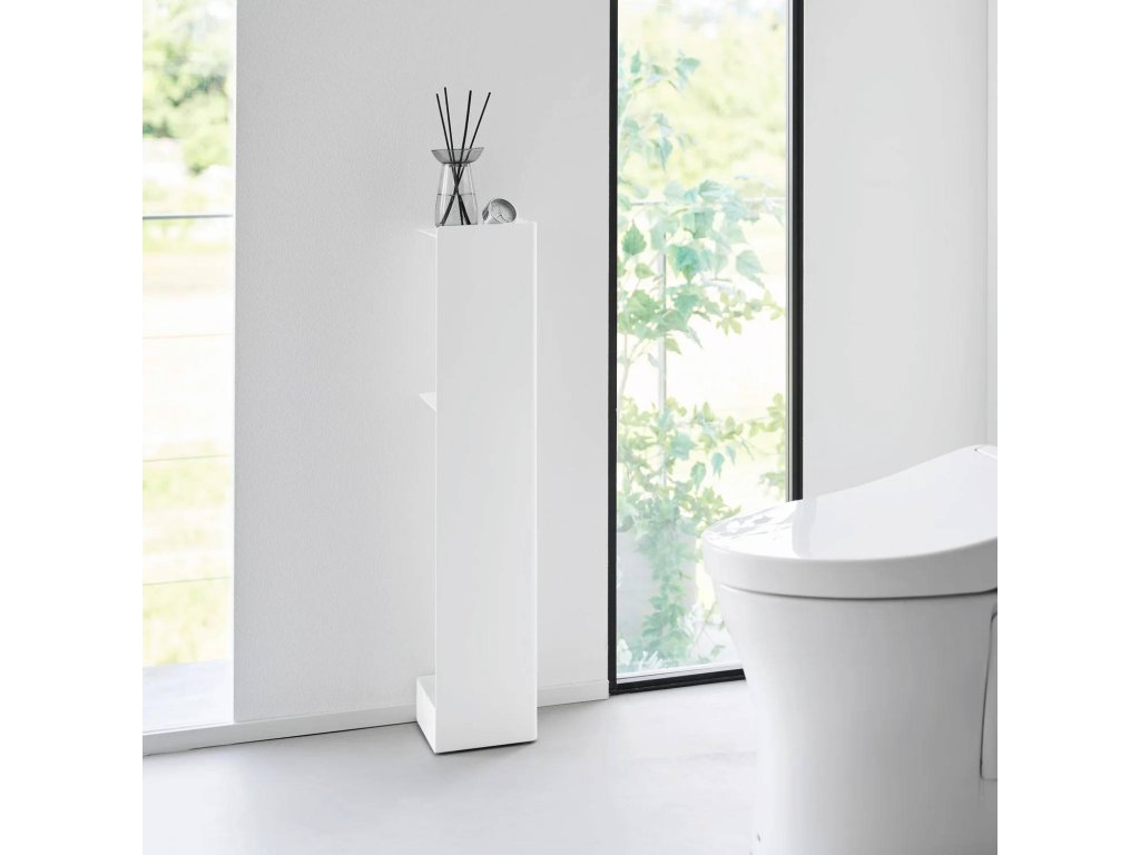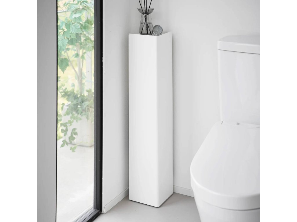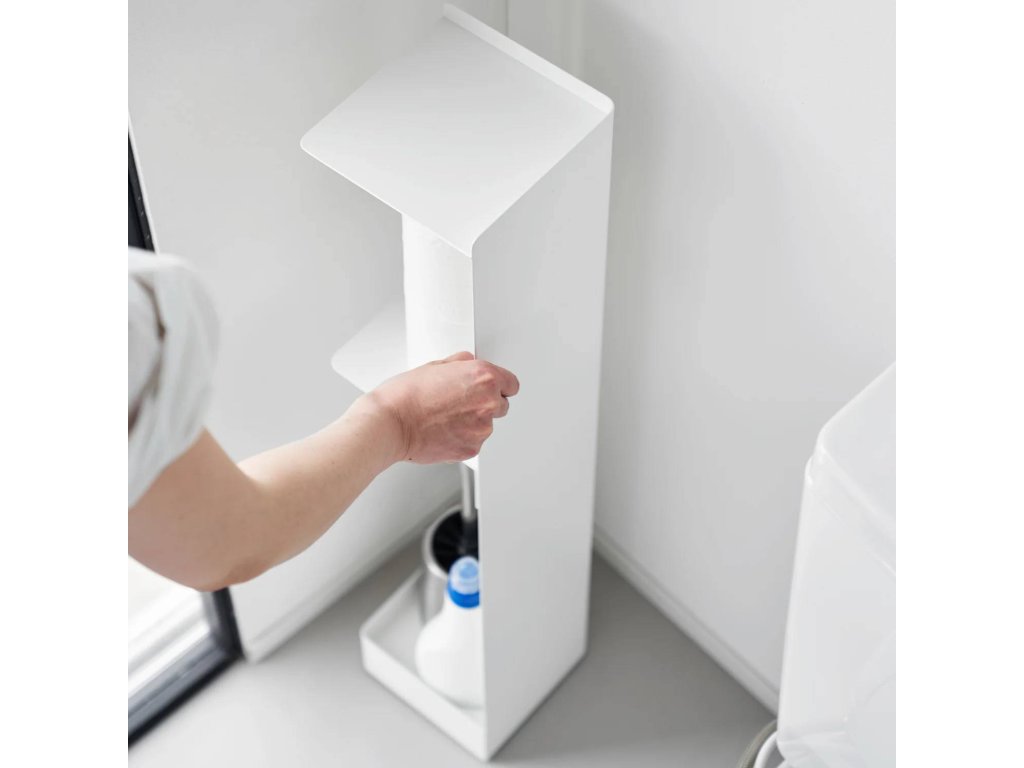 Multifunkční prostorově úsporný WC organizér YAMAZAKI Tower 1489(bílý) / 1490 (černý) z lakovaného kovu se dvěma plnými boky zakrývajícími obsah . Slouží k uložení WC štětky, uskladnění náhradního toaletního papíru nebo čistících prostředků. Vnitřní magnetickou poličku lze nastavit do různých výšek dle potřeby. Skrytá kolečka umožňují snadnou manipulaci a otáčení. Na horní poličku můžete odložit telefon.