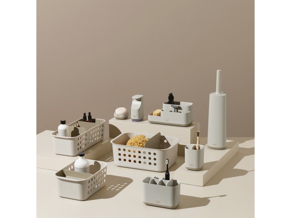 Zásobník do koupelny JOSEPH JOSEPH EasyStore 70585 pro pořádek na policích i uvnitř zásuvek. Hluboký košíček s odvětrávanými boky pro dobrou cirkulaci vzduchu. Pohyblivý vnitřní zásobník na drobné předměty. Rozebíratelný pro snadné čistění. Barevné provedení Ecru (barva surového hedvábí resp. neběleného plátna). Myjte a sušte ručně. Velikost: 11,3 x 18,5 x 29 cm (VxŠxH).