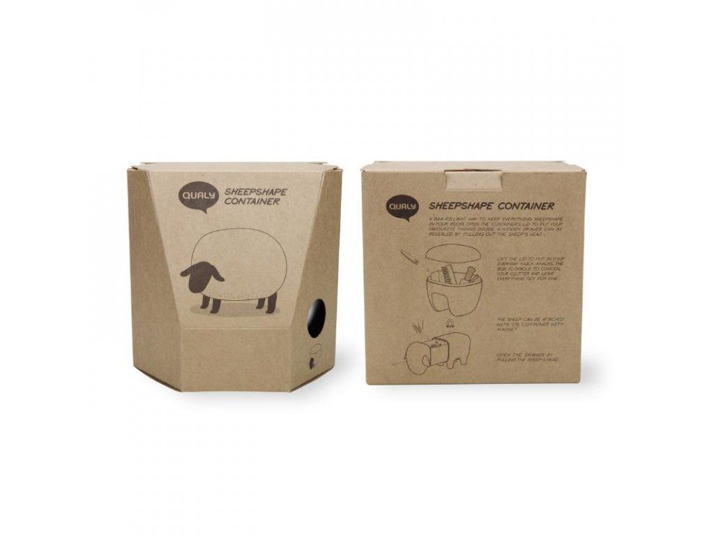 QUALY Sheepshape Container - ovečka se zásuvkou a velkou dózou. Zatažením za hlavu ovečky se otevírá zásuvka, do které se ideálně vejdou vatové tyčinky. Na zádech ovečky je odnímatelná dóza s víčkem. Dózu na ovečce přidržují tři malé magnety. Při užití v koupelně můžete prostornou dózu zaplnit vatovými tampóny, menšími hřebeny, sponkami a jinými drobnostmi. Hodí i do dětského pokoje na menší hračky, do hotelové recepce na bonbóny, jako organizér na pracovní stůl nebo jako dóza na šperky.