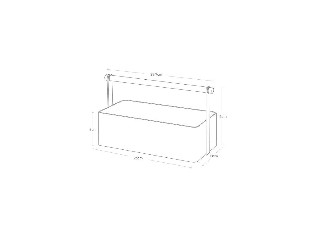 Multifunkční box z lakovaného kovu s bukovým madlem - YAMAZAKI 2312. Velikost: 16 x 29 x 13 cm (VxŠxH).