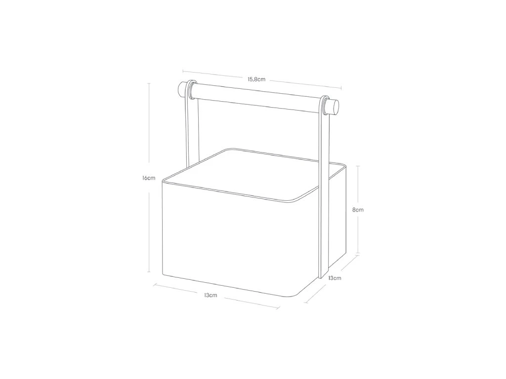 Multifunkční box z lakovaného kovu s bukovým madlem - YAMAZAKI 2313. Velikost: 16 x 13 x 13 cm (VxŠxH).