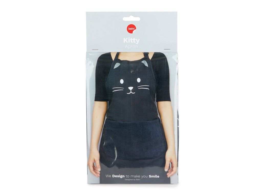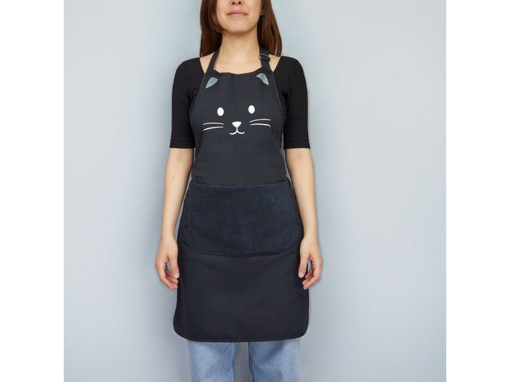 Zástěra s kapsou BALVI Kitty. Materiál: polyester, bavlna. Velká kapsa z mikrovlákna ideální k osušení rukou i uložení telefonu. Nastavitelné popruhy pro všechny velikosti. Lze prát v pračce. Velikost: 80 x 53 x 0,2 cm (VxŠxH).